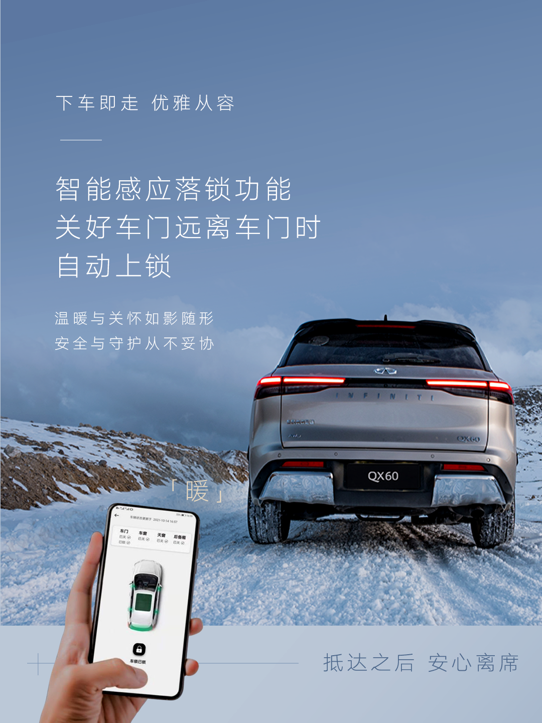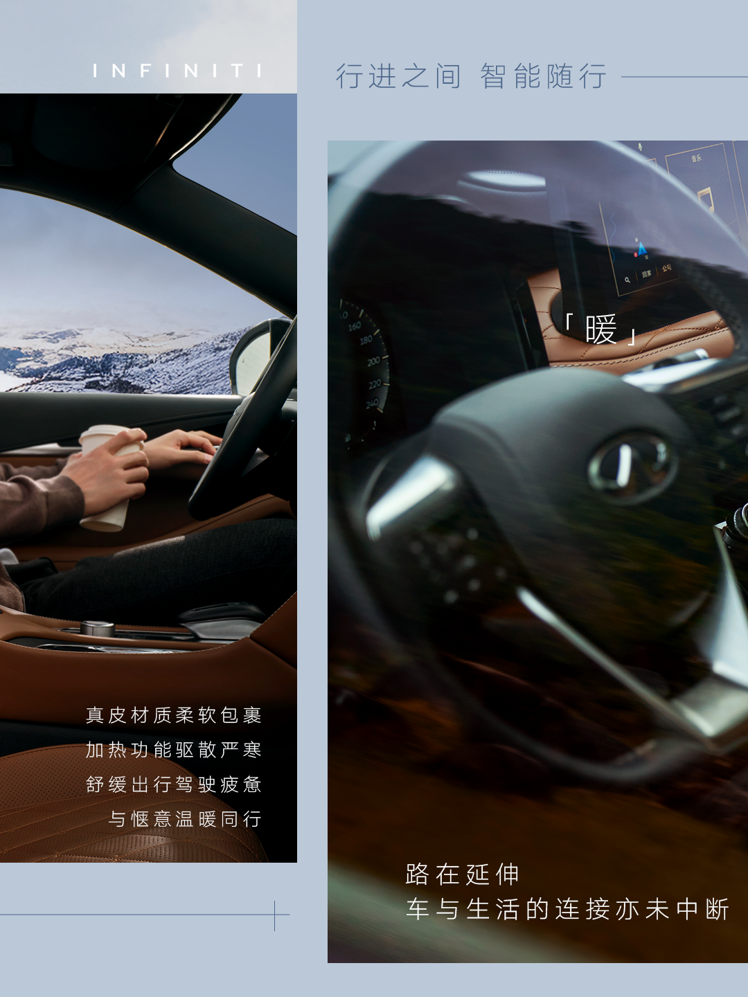 推荐:「点击左移切换」后「左滑」查看英菲尼迪汽车的冬季舒适与便捷功能,借此吸引读者前往购买。