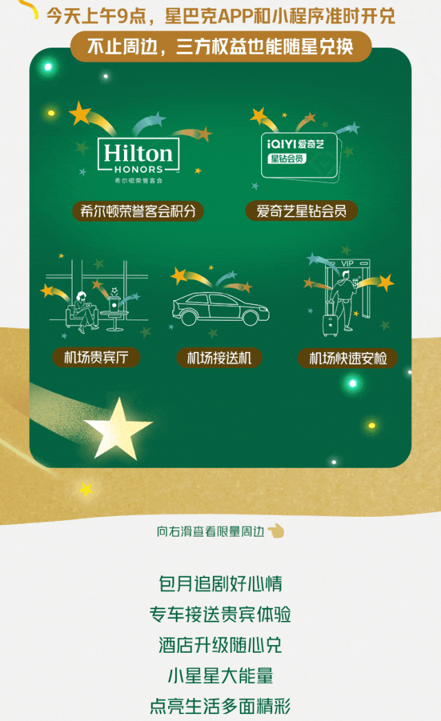 推荐:星巴克通过「点击切换后展开」宣布每月17日的会员专属福利日活动“一起开星日”,包含“买3赠1”的“合拍礼”和消费后星星奖励膨胀的“膨胀礼”,并介绍了好礼兑换、竞拍和线下派对等环节。