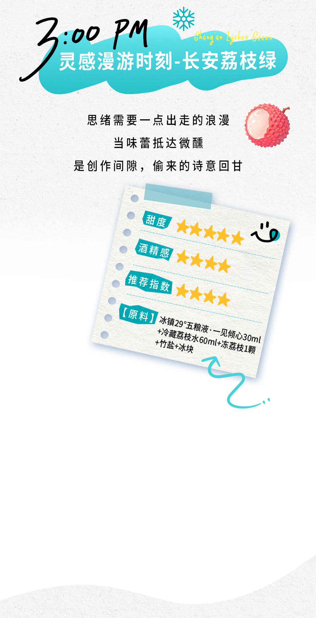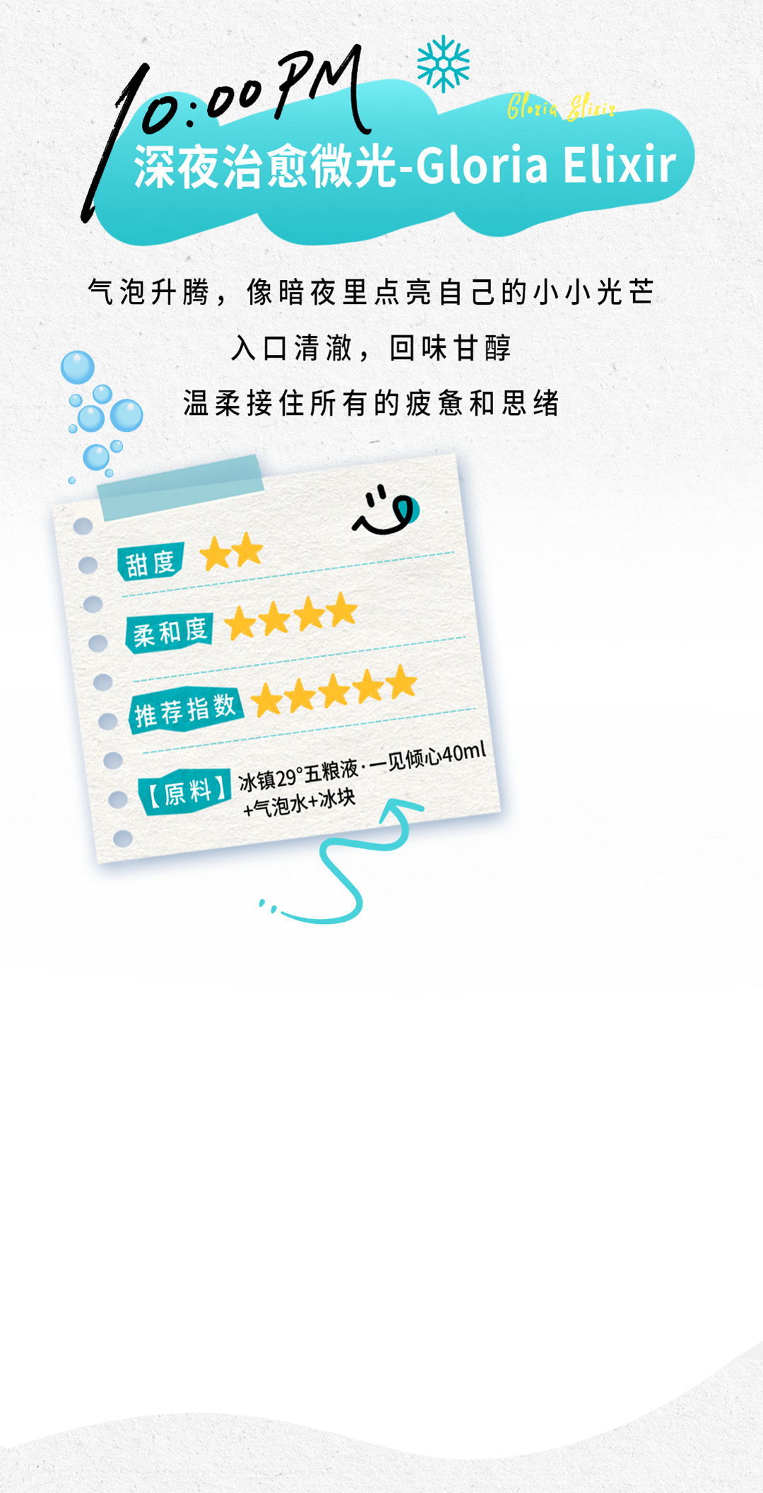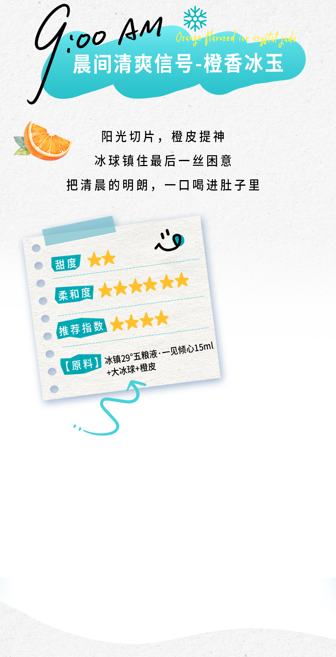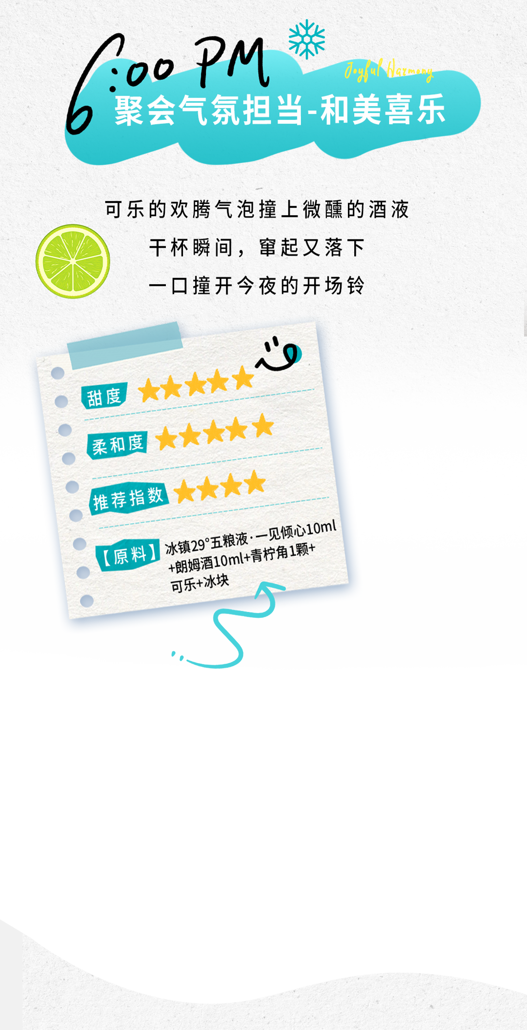 推荐:「点击伸缩式展开」介绍29°五粮液一见倾心酒的创意调饮指南,「视差上滑」提供晨间、下午、聚会等不同场景的调饮配方,强调微醺是感知生活的方式。