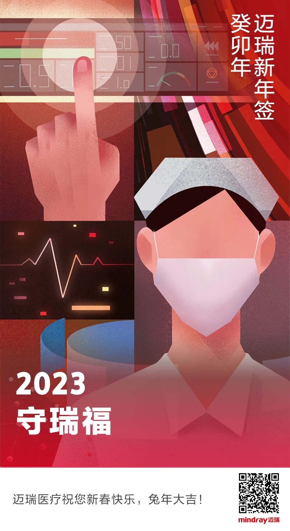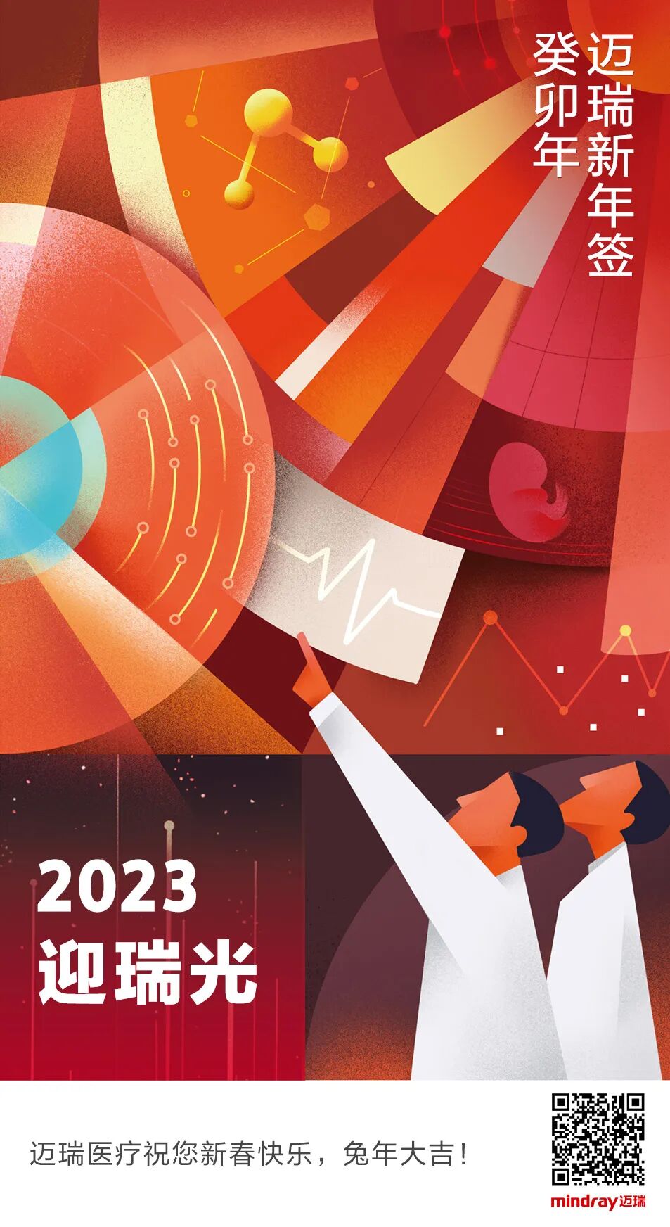 推荐:「新年签」抽取迈瑞医疗发布的新春祝福海报,以“迈瑞新年签”为主题,向读者致以新春快乐、兔年大吉的祝福。