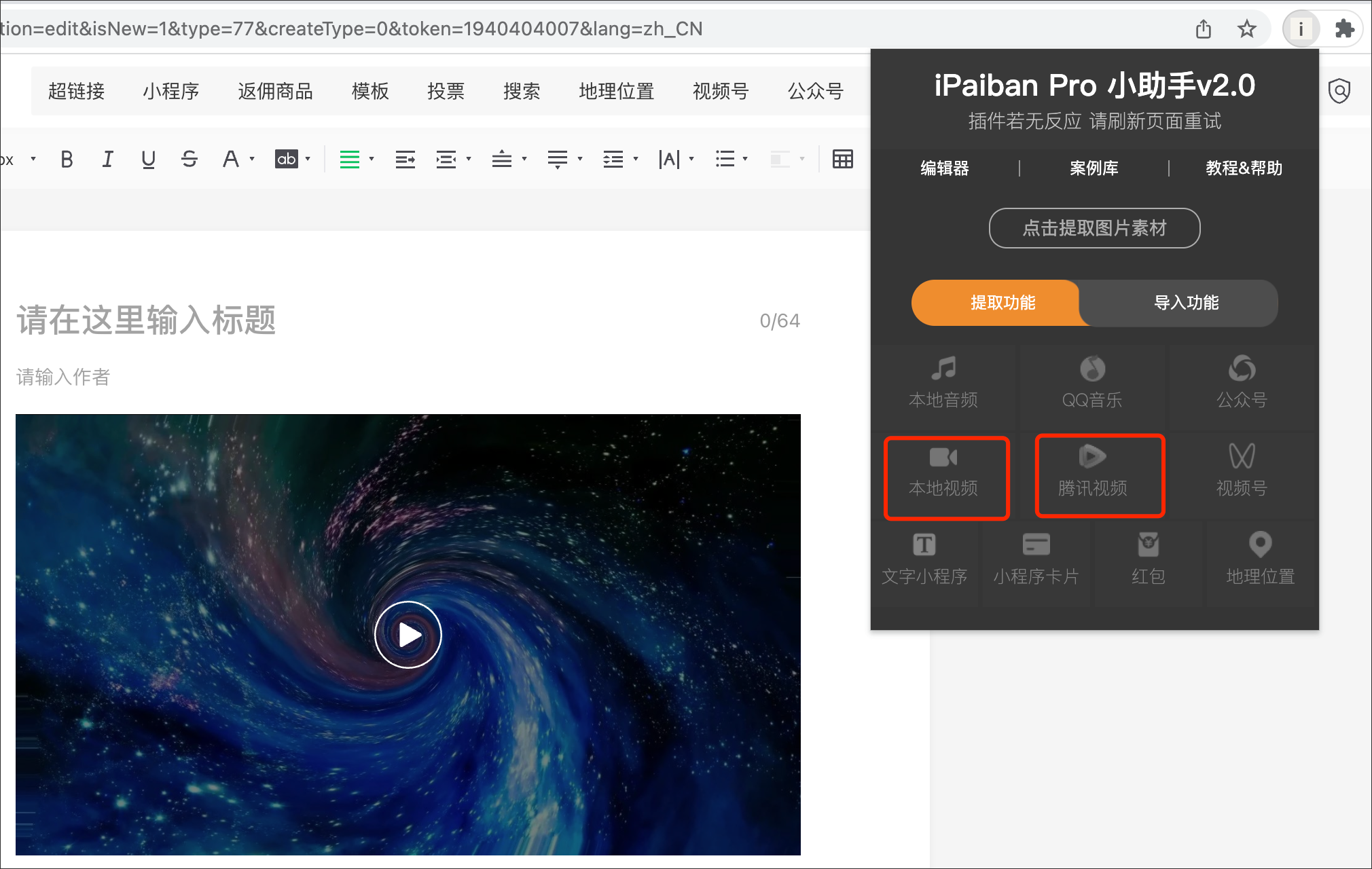 点击页面右上角 iPaiban Pro 小助手插件,选择【本地视频】或【腾讯视频】。