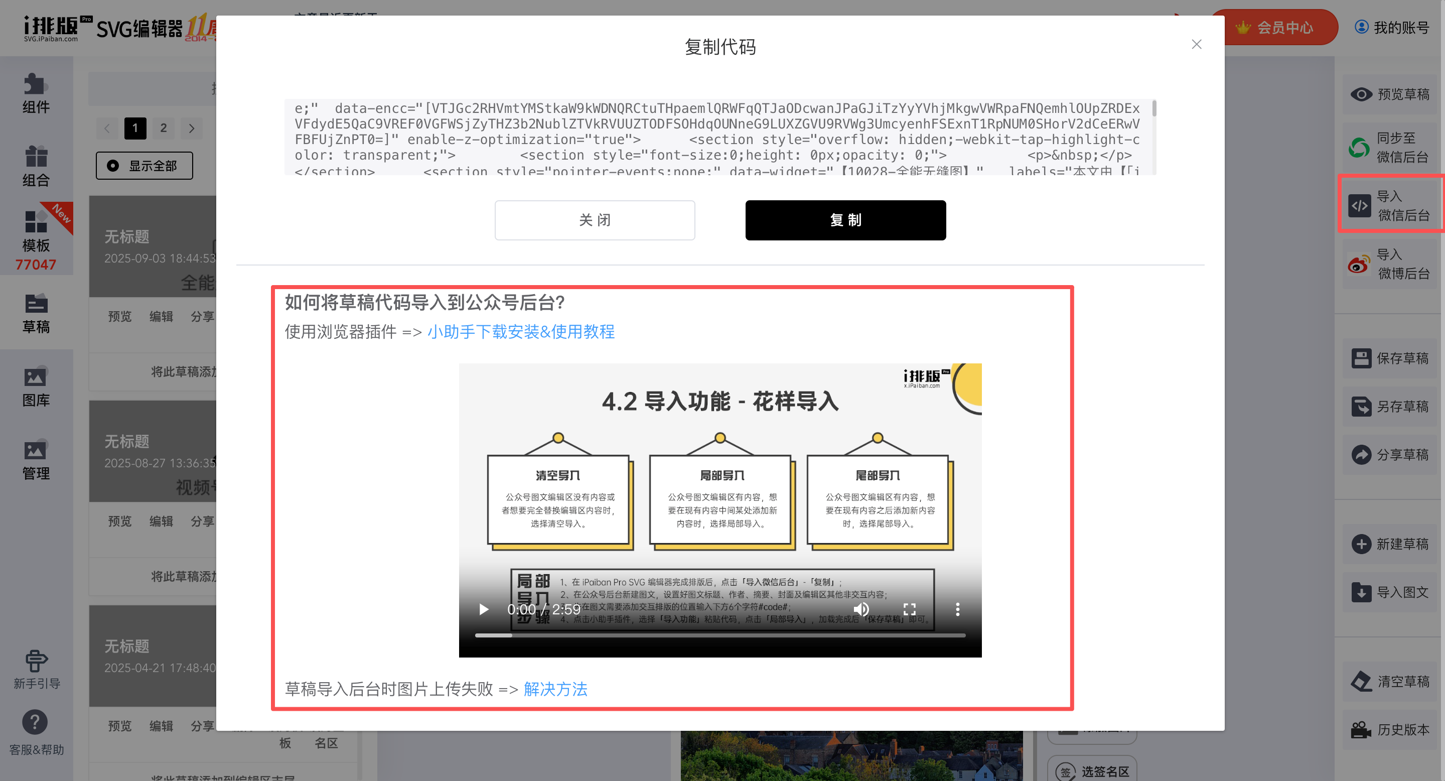 如果以上两种方案都无法满足预览要求,那么还可以将草稿代码导出,手动到微信公众号后台的草稿中插入代码;