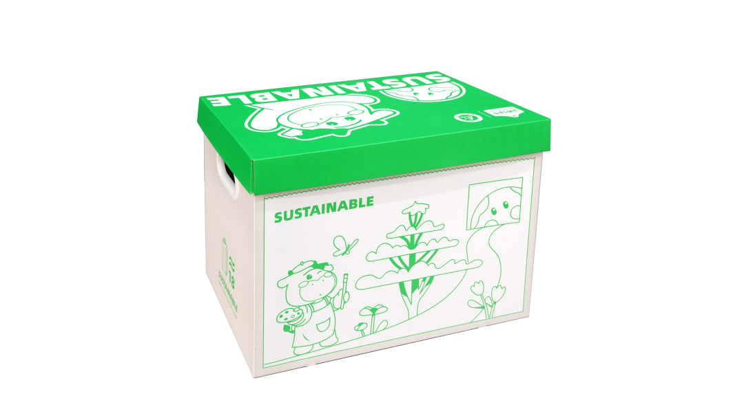 每个环保收纳箱都是约18个牛奶盒的回收再生材料+新的纸浆材料制作的。