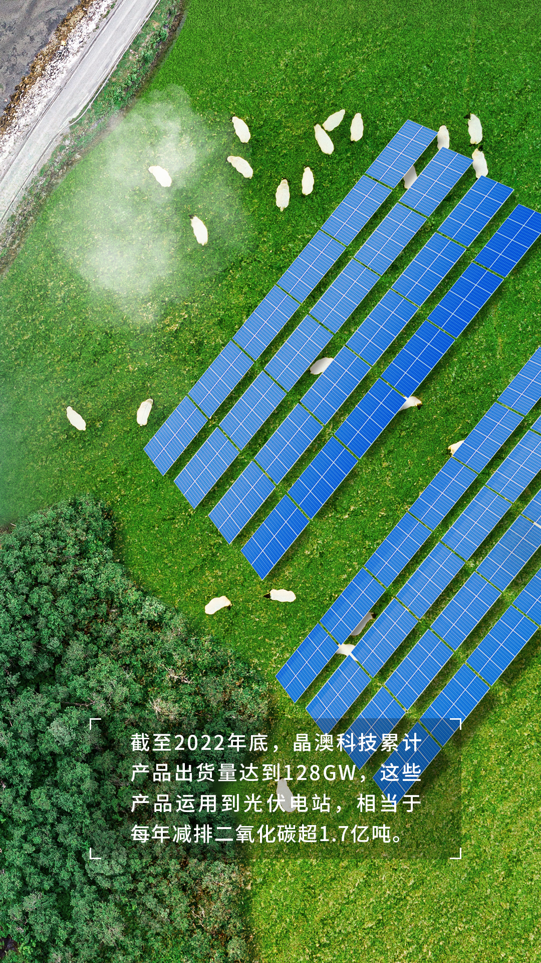 作为全球生态文明建设的参与者、贡献者,晶澳科技秉持“开发太阳能,造福全人类”的企业使命,践行可持续发展理念,努力推动构建合作共赢的全球环境治理体系,为共建美好地球家园贡献晶澳智慧、晶澳力量。截至2022年底,晶澳科技累计产品出货量达到128GW,这些产品运用到光伏电站,相当于每年减排二氧化碳超1.7亿吨。