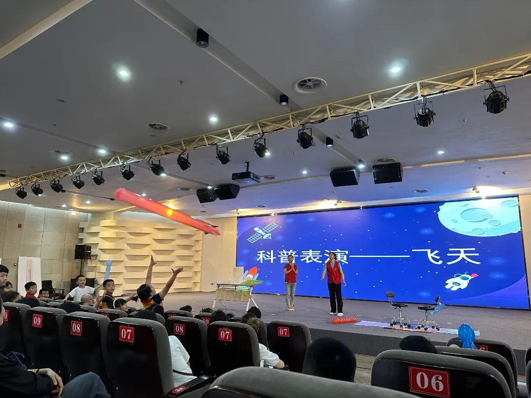 观影结束后,科普剧《飞天》让活动进入了高潮。讲解员利用气球、塑料袋等生活中常见的物品,模拟火箭升空的过程,以简单有趣的实验和生动的表演,向游客解释火箭发射的原理,让游客们对航空航天有了更深入的了解。