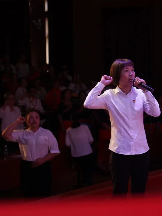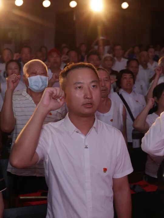 上午九点活动正式开始,社区党委书记钟奇华同志上台致辞,向现场的来宾表示热烈欢迎,并带领大家重温党的光辉历程,讴歌党的丰功伟绩,以庆“七一”文艺汇演向党的102岁周年献礼。紧接着,钟书记带领全体党员面向党旗,举起右手,庄严地向党旗宣誓,重温入党时的神圣与庄严。