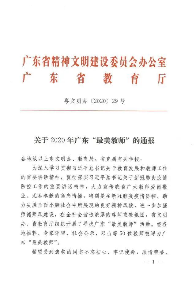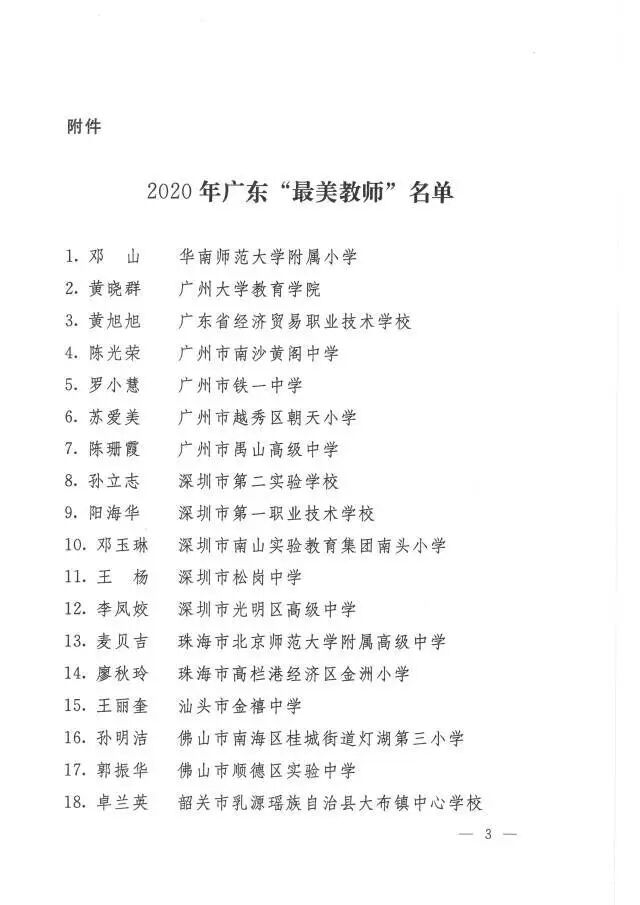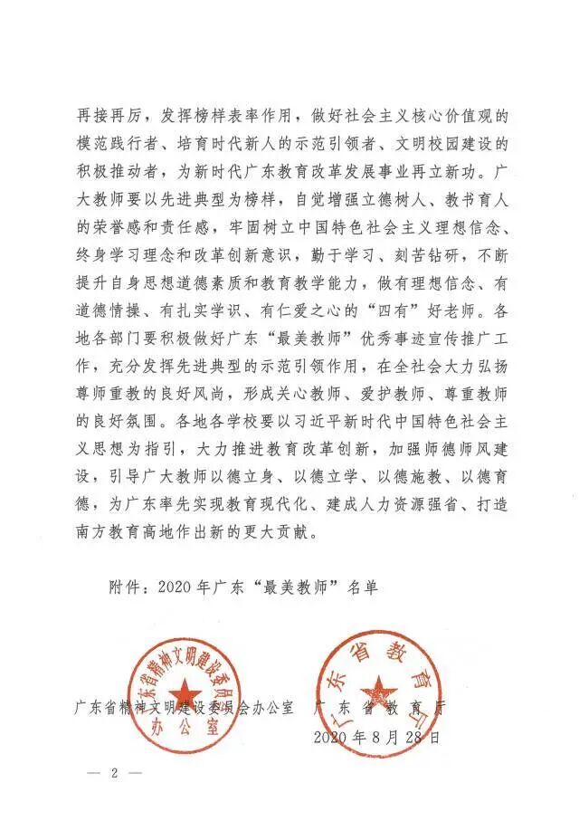 《关于2020年广东“最美教师”的通报》,