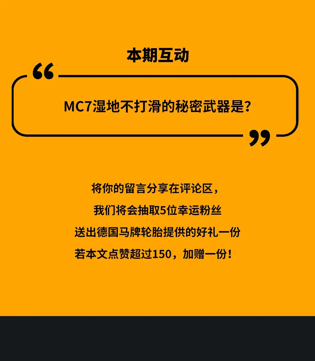 截止时间之前在当期文章留言区留言的Continental德国马牌轮胎微信公众账号关注者,留言足够真情实感,并且同时满足上述抽奖规则。