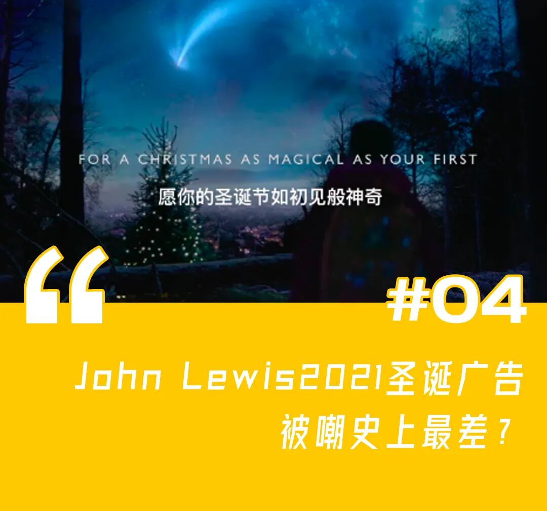 英国老牌百货公司John Lewis发布2021年全新圣诞短片,由老搭档伦敦Adam&DDB创意担纲,讲述了一个地球男孩与外星女孩一起过圣诞的故事,没有跌宕起伏且略显老套的剧情,虽并未给大家带来太多的惊喜感,但品牌意欲向观众传递「愿你的圣诞节如初见般神奇」的理念依旧令人动容。