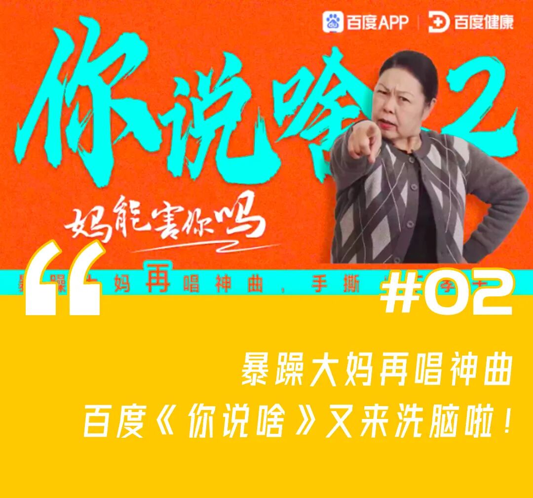 洞察到老年群体对网络健康谣言深信不疑的现象,百度再次携手朝阳大妈,通过一首rap《你说啥2-妈能害你吗》,唱出了父母对子女健康问题的深切关心。延续歌曲的形式,让百度不仅与观众建立情感连接,还为百度健康全新的辟谣板块来了场趣味宣传,这波营销可谓是既走心又实用。![]()