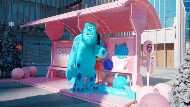 在外广场的电车站台旁,《怪兽大学》里的苏利文已经等候多时!除了和它合影外,在这还能领取“毛毛狂欢”车票!车票上不仅有打卡路线指南,完成票上的打卡任务,还能获得皮克斯角色粒粒公仔一粒(数量有限)~