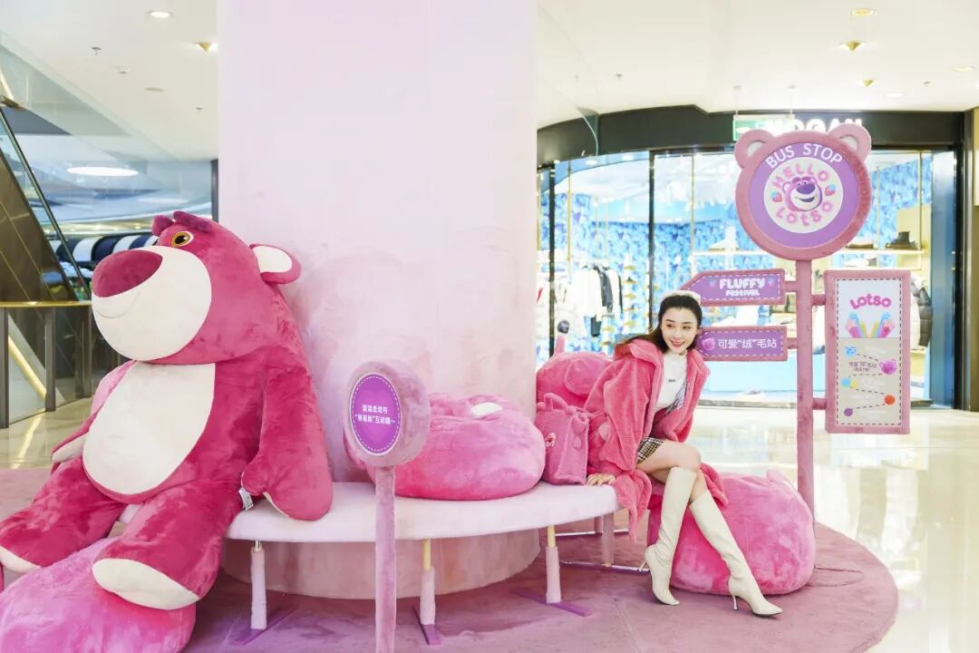 顶流草莓熊驻守的可爱“绒”毛站,则在他们的斜对面位置,比人高的柔软身体让人真的好想尽情拥抱!