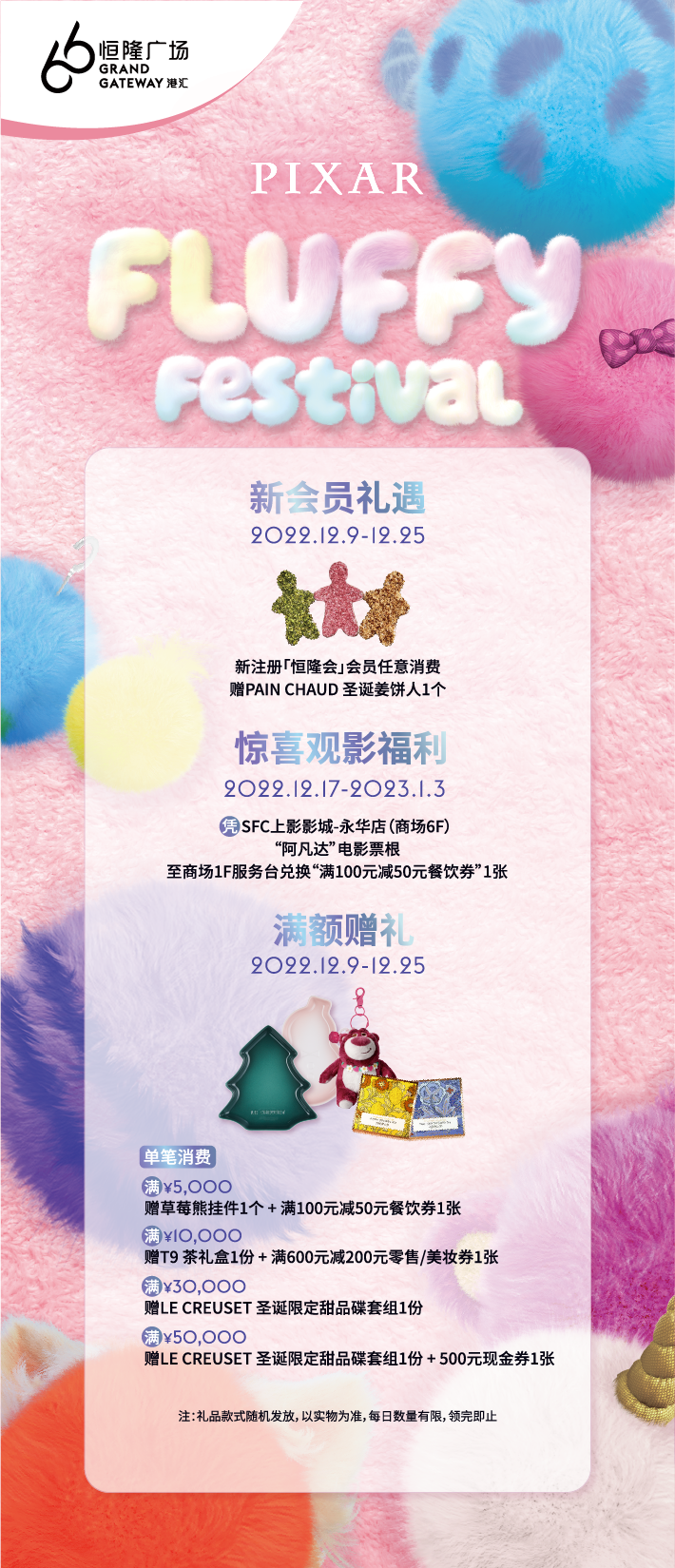 毛毛狂欢车票打卡的奖品——皮克斯角色粒粒公仔,也是在这里领取喔~(12月24日-12月25日每日限量700份,12月31日-1月1日每日限量350份)