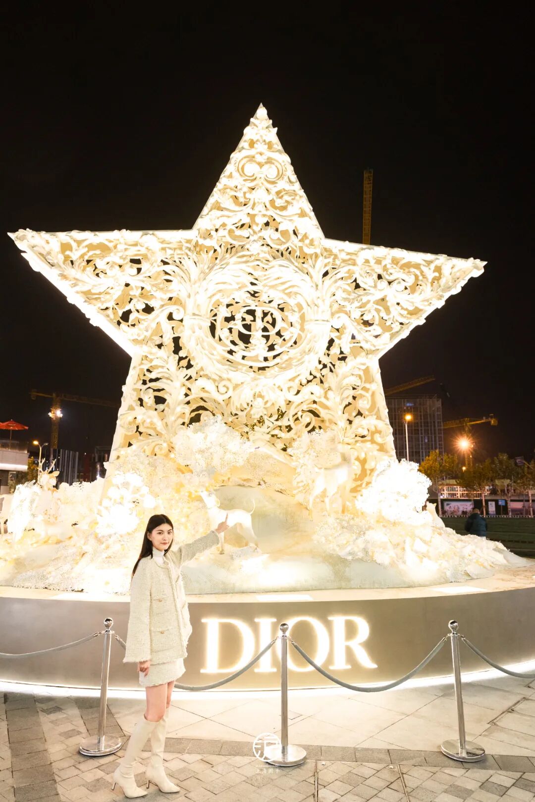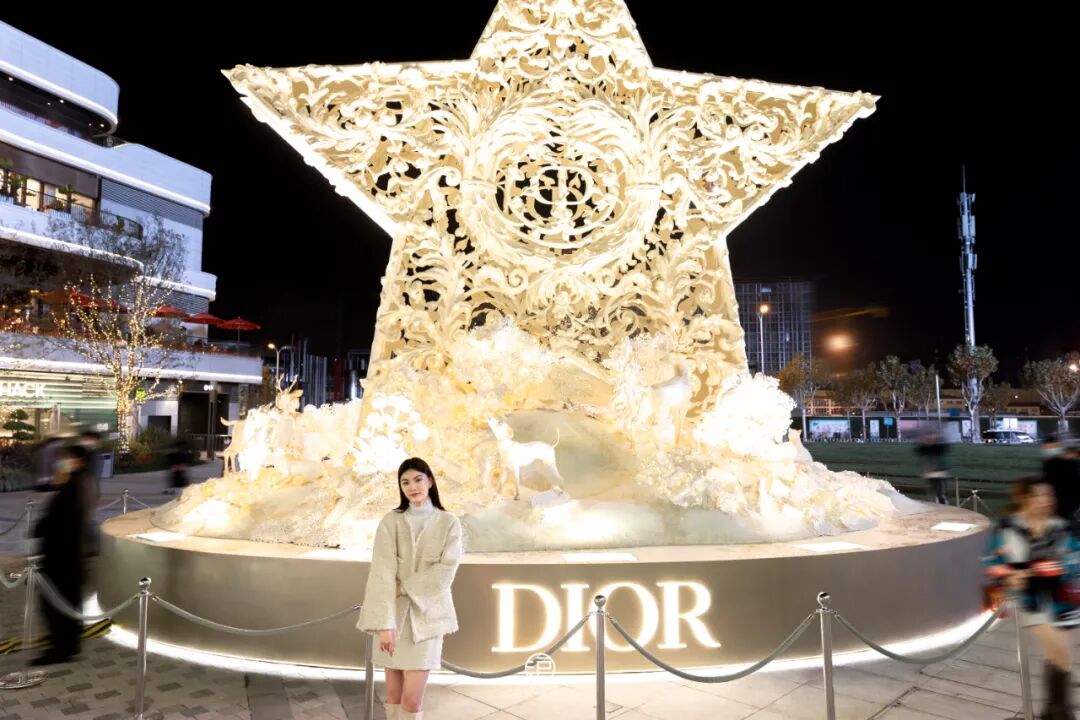 来到“前滩太古里”中央广场,DIOR大大的圣诞装置映入眼帘,白金的配色尽显高端气息,冬季浪漫氛围立现。