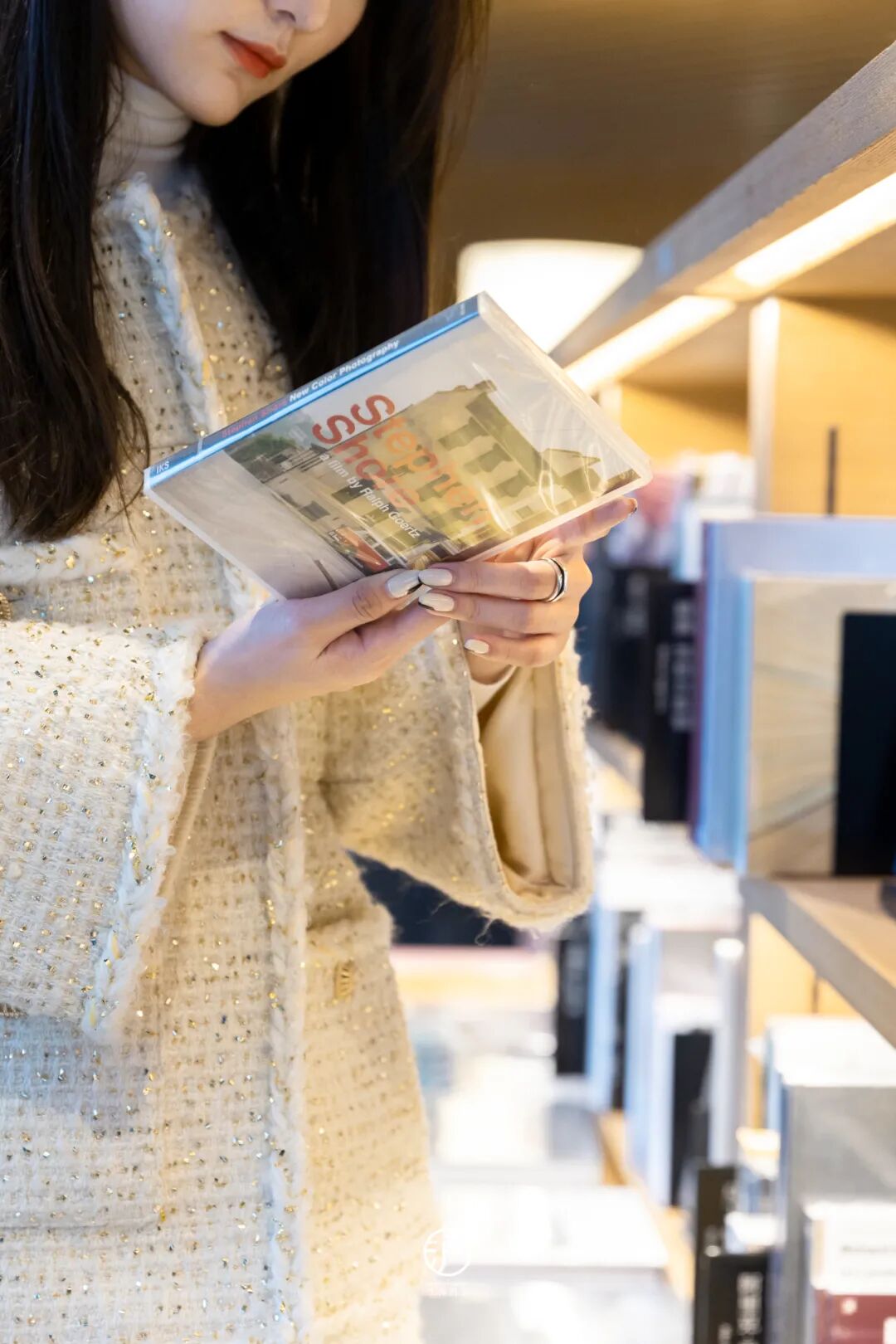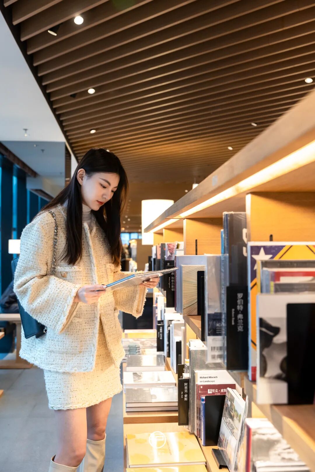 漫步于书店内,林林总总的文具杂货、各类型书籍,以及自然原木色书架都让人倍感舒适,搭配穿透玻璃的阳光晕影,充满简约的线条感和温柔的文艺感。