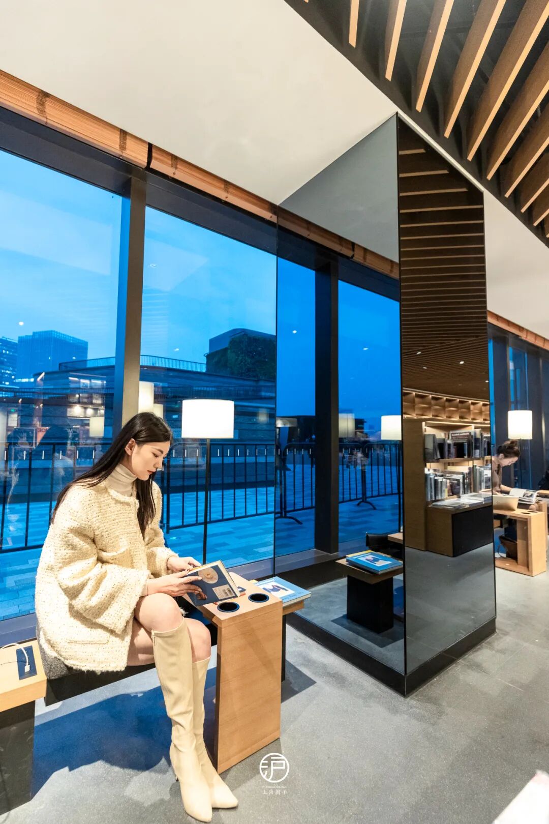 一整个“通透玻璃房”降临魔都“前滩太古里”!「茑屋书店」位于石区4楼屋顶,明亮的落地玻璃Mix深灰色墙体,甚是优雅,450米的天空环道可以环绕屋顶一周!
