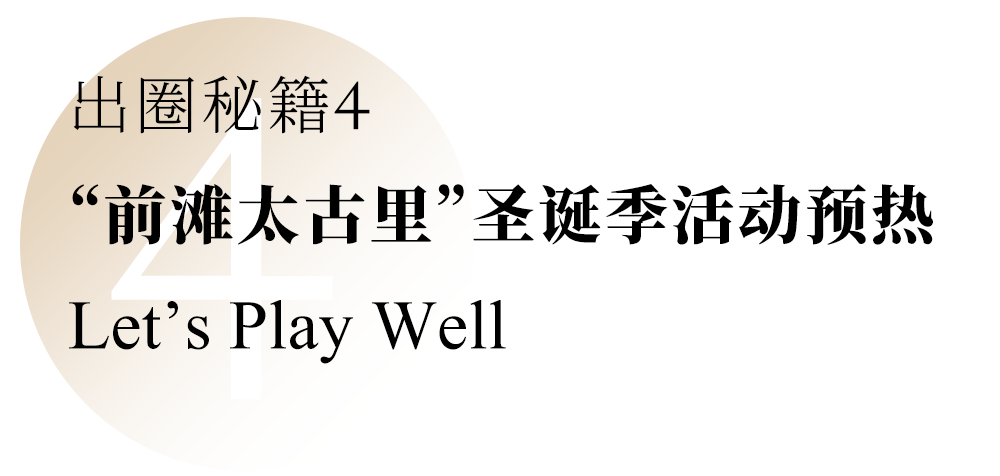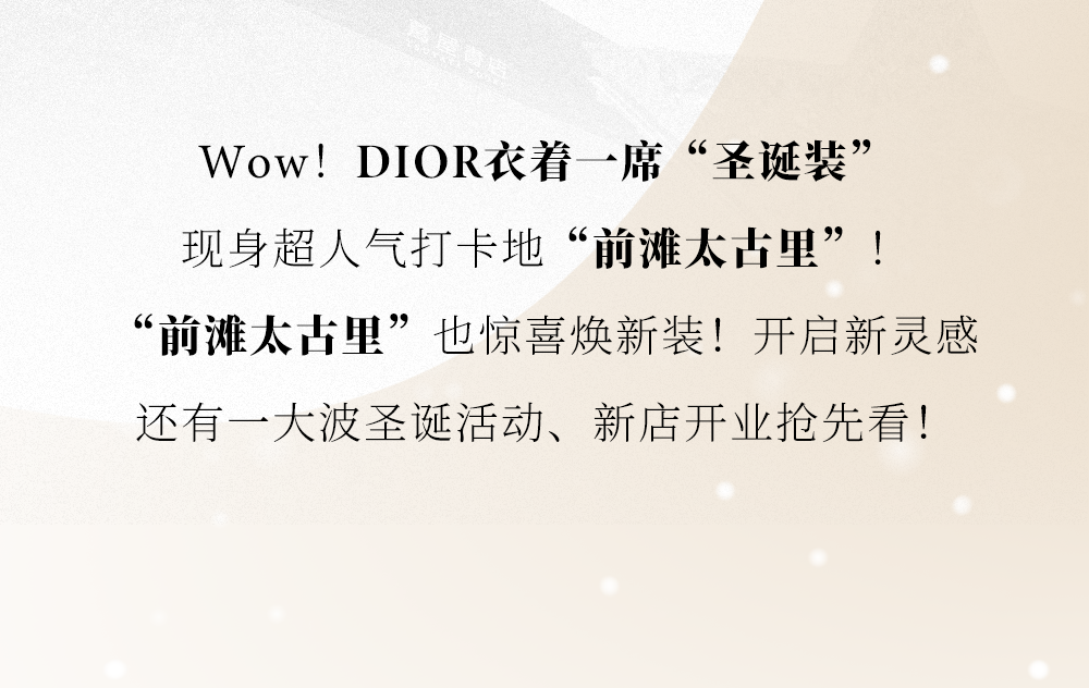 “前滩太古里”节日气息渐浓!圣诞活动已经开始预热,一大批Surprise不要错过,关注“前滩太古里”官方公众号,一起邂逅美好生活灵感!
