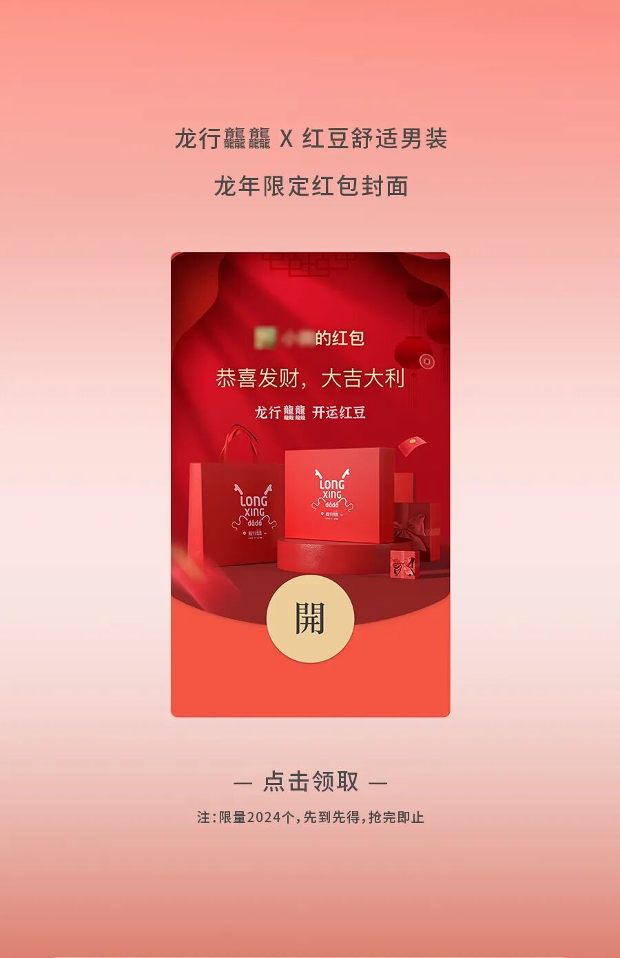 推荐:依次输入2024「解锁展开」红豆厂舒适一身和红运新年礼介绍,以衣为媒传递新年红运,从而宣传红豆舒适男装,吸引大家购买。