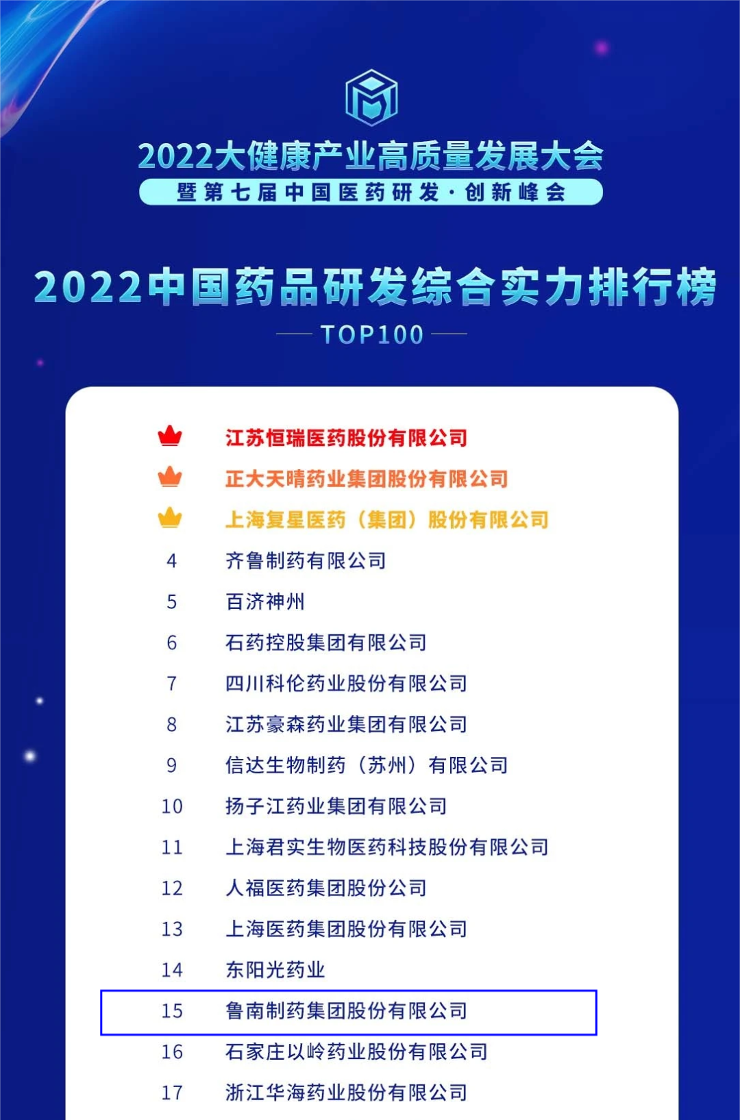 “品质鲁药”“中国医药百强”“山东省全员创新企业”