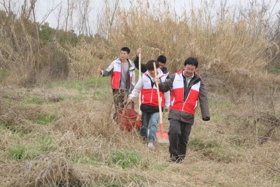 在大家的共同努力下,一棵棵樱花树、梅花树在清源河旁扎根生长,交织出春日校园的盎然生机。