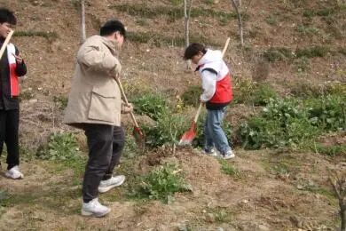 在工作人员的协助下,同学们还进行了农耕实践活动,亲身体验农耕生活,感受农耕文化的魅力。“种下一颗智慧树,目有繁星追光行;种下一颗求学树,鸿鹄之志踏山平。”看着杂草丛生的荒芜山坡渐渐种满了整整齐齐的小树苗,同学们内心涌起满满的成就感。