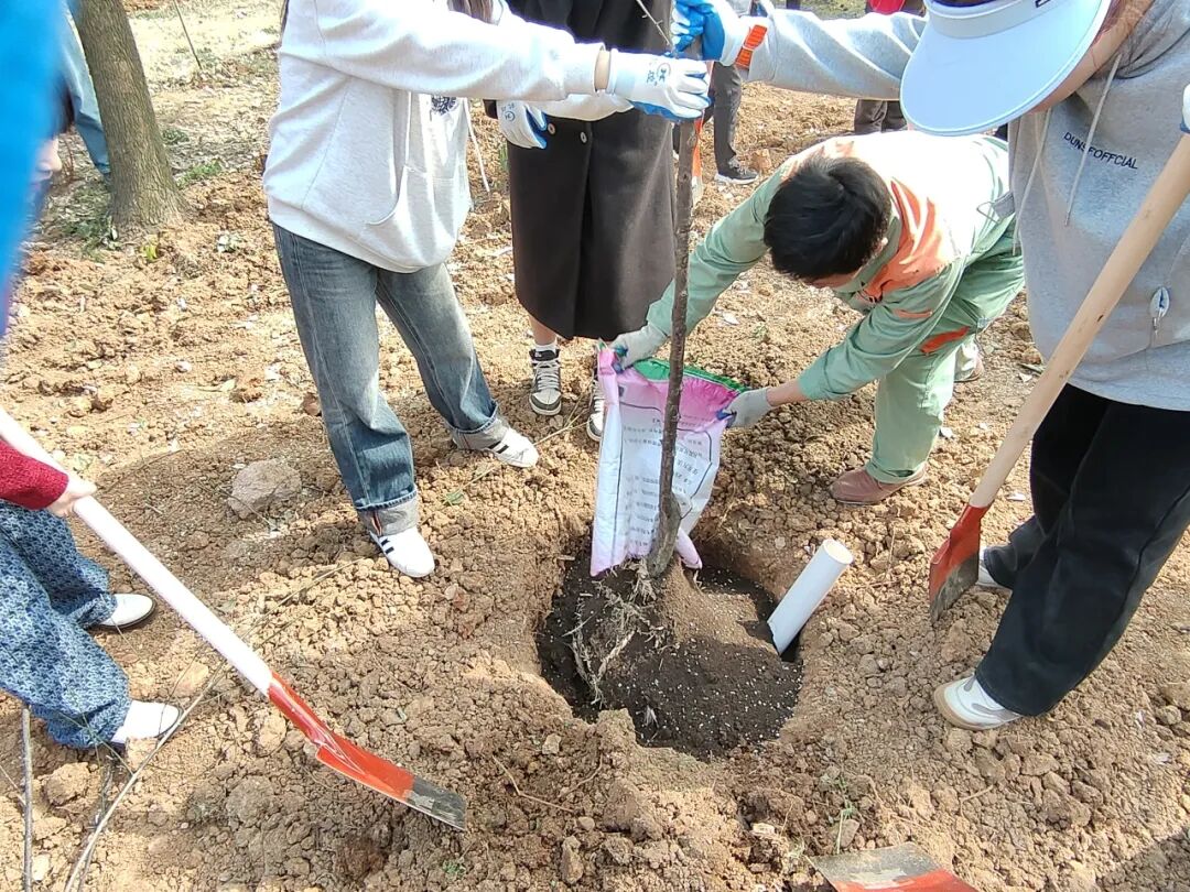 生命科学学院的同学们,则来到华豆源农业科技产业园开展研学活动,参与义务植树,为自然灌溉生机与希望。