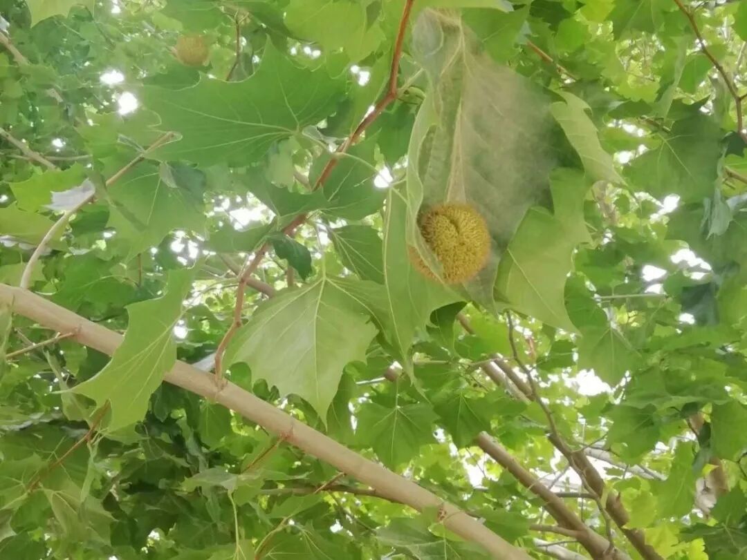 一球悬铃木,悬铃木科、悬铃木属的落叶大乔木。它的叶大,长度比宽度略小;基部截形,阔心形,或稍呈楔形;裂片短三角形,宽度远较长度为大,边缘有数个粗大锯齿;上下两面初时被灰黄色绒毛,不久脱落,上面秃净,下面仅在脉上有毛,掌状脉3条,离基约1厘米;基部鞘状,上部扩大呈喇叭形,早落。