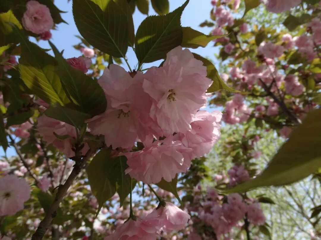 日本晚樱,蔷薇科、李属的落叶乔木植物。日本晚樱的叶片卵状椭圆形或倒卵椭圆形,长5-9厘米,宽2.5-5厘米,先端渐尖,基部圆形,边缘有渐尖重锯齿,齿端有长芒,上面深绿色,无毛,下面淡绿色,无毛,有侧脉6-8对;叶柄长1-1.5厘米,无毛,先端有1-3圆形腺体;托叶线形,长5-8毫米,边有腺齿,早落。