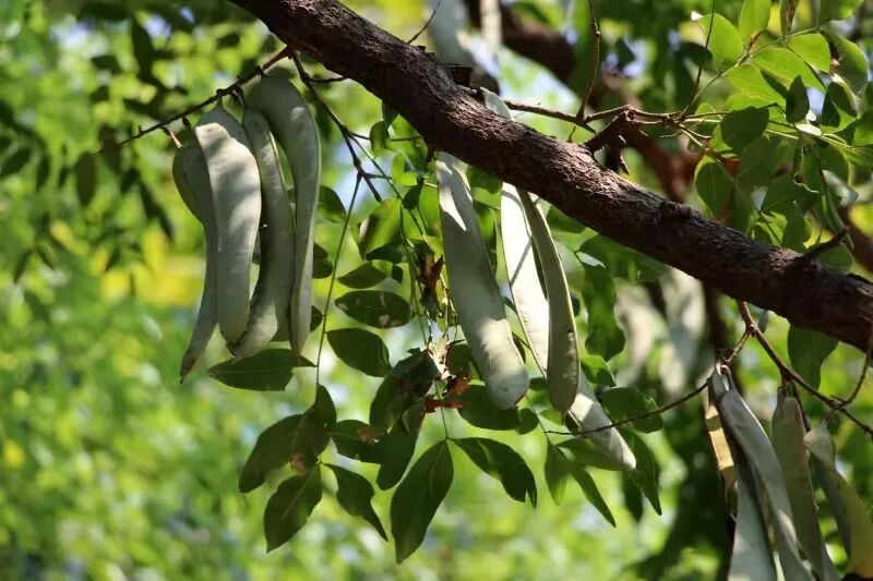 皂荚,豆科、皂荚属落叶乔木。枝为刺圆柱形,小叶卵状披针形或长圆形;花杂性,为黄白色;荚果带状,厚且直,两面膨起;果瓣革质,褐棕或红褐色,常被白色粉霜,有多数种子;荚果短小,稍弯呈新月形,内无种子;花期3-5月,果期5-12月。
