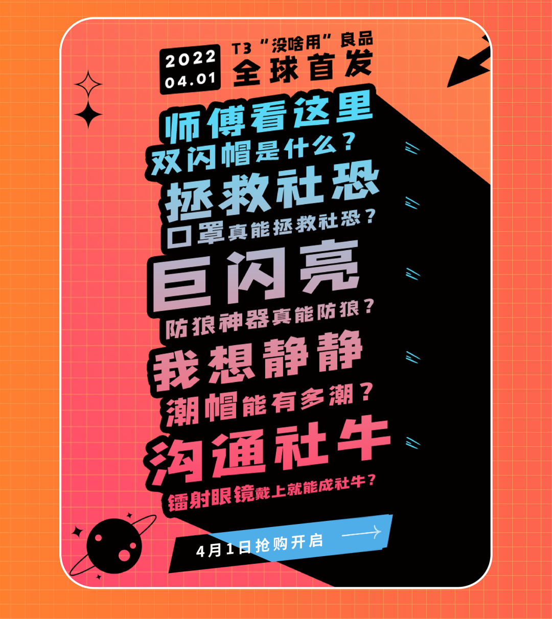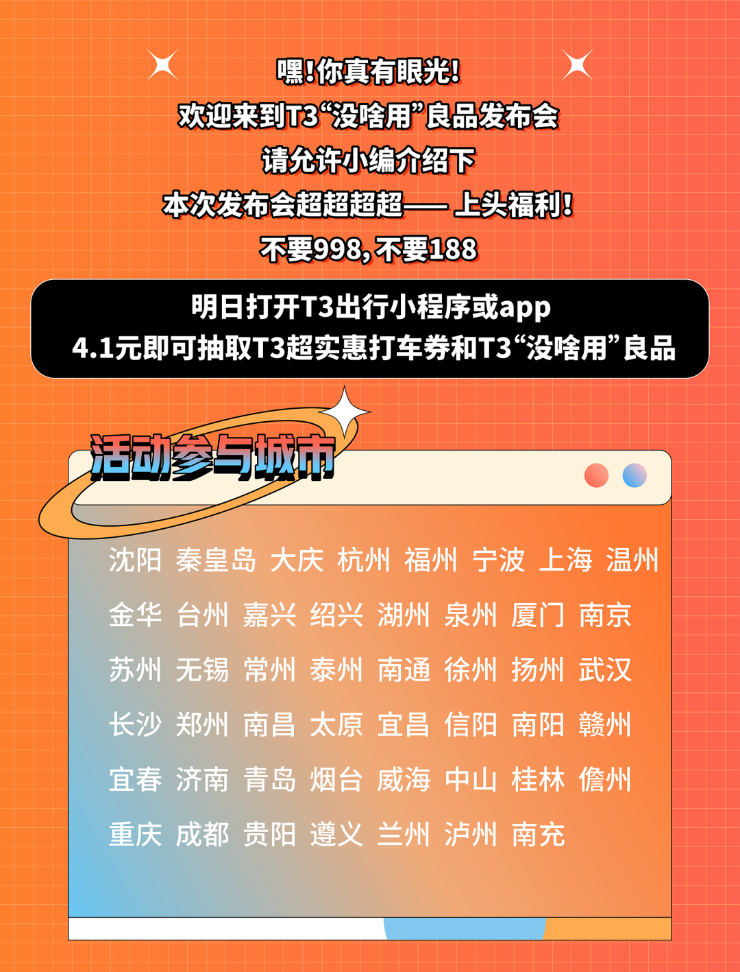 推荐:愚人节之际,「点击展开」T3出行的“没啥用”良品发布会,吸引大家参加抽奖活动。