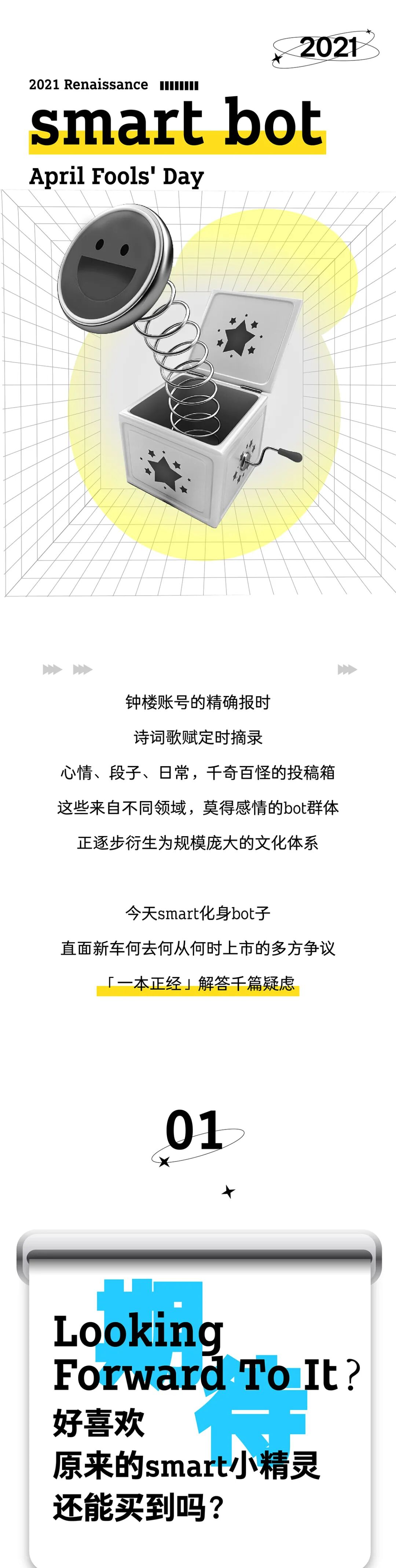 推荐:smart通过“点击切换图片”和“连续点击切换多张图片”的交互形式,借助愚人节的节日热点,宣传smart bot,吸引消费者对新车的关注和购买。