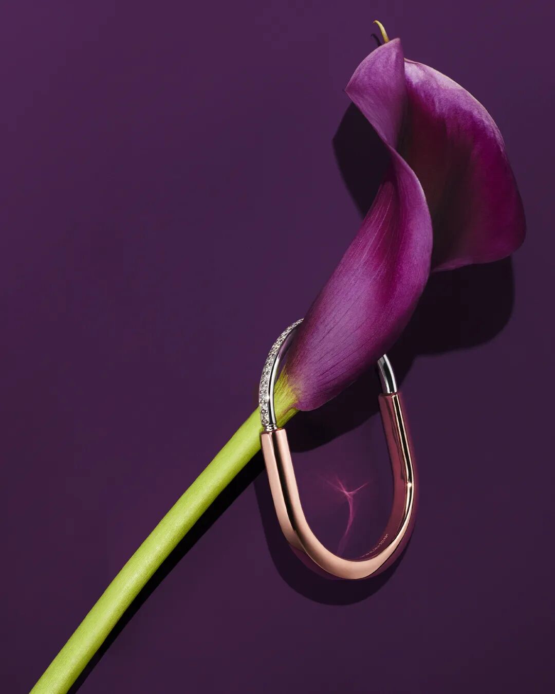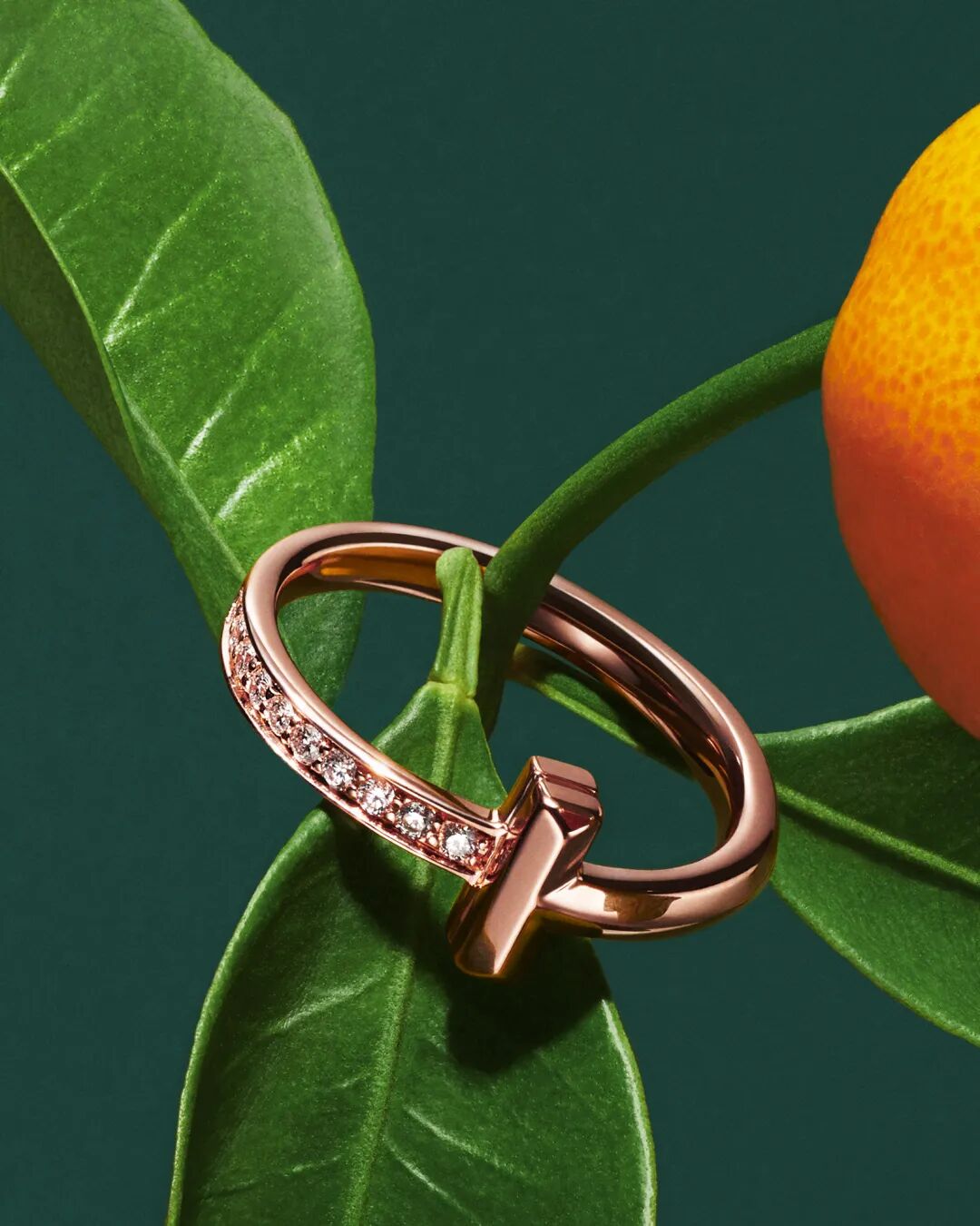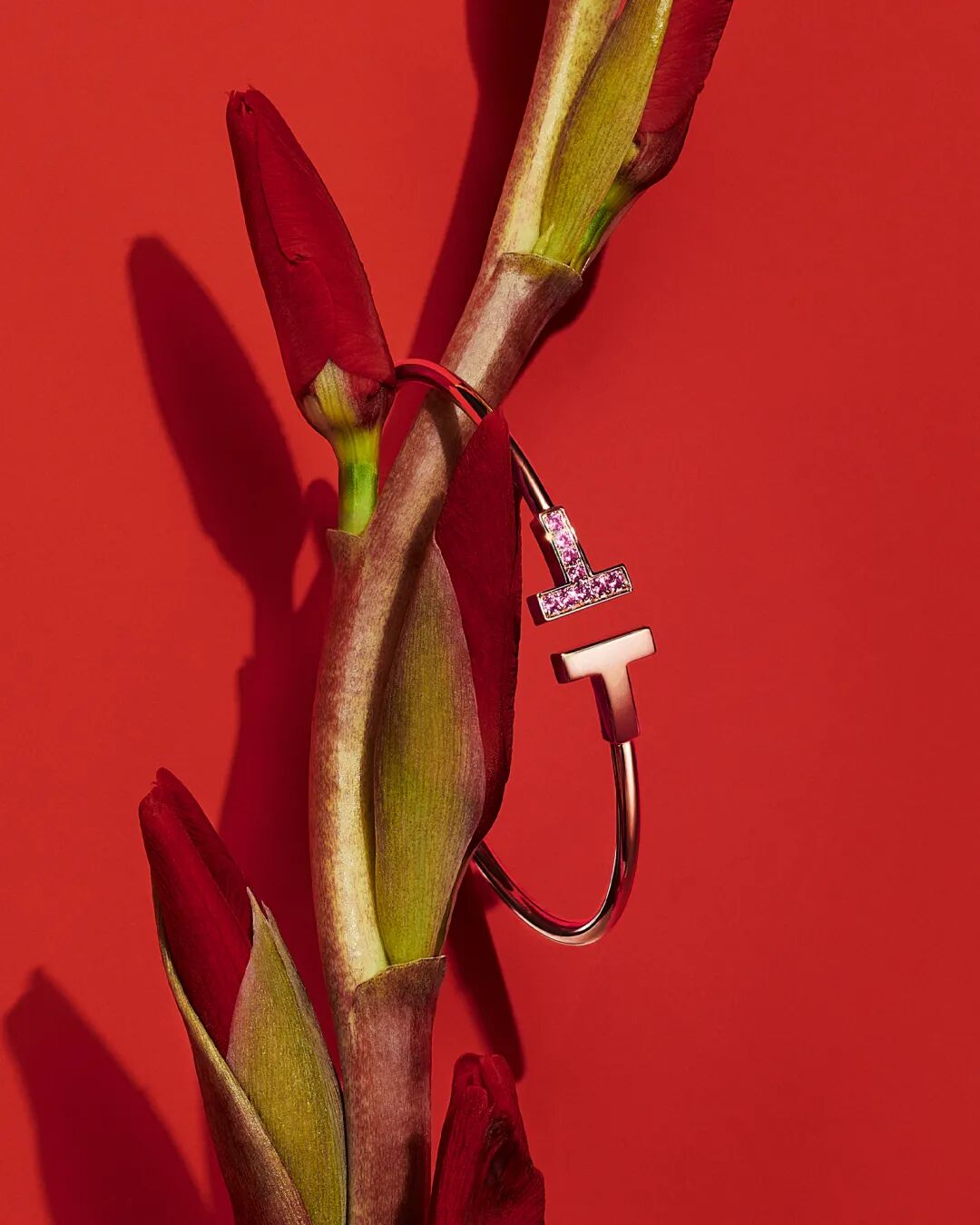 右:Tiffany & Co. 蒂芙尼T1系列18K玫瑰金镶钻窄式戒指并同步推出Tiffany T系列全球限量款作品,18K玫瑰金与粉色蓝宝石的妙趣搭配,为经典设计赋予全新浪漫意蕴,鲜明隽朗的品牌符号,在宝石光芒勾勒下闪耀瑰美色泽,映照对未来的无限期许,开启鸿运满载的兔年新岁。![]()