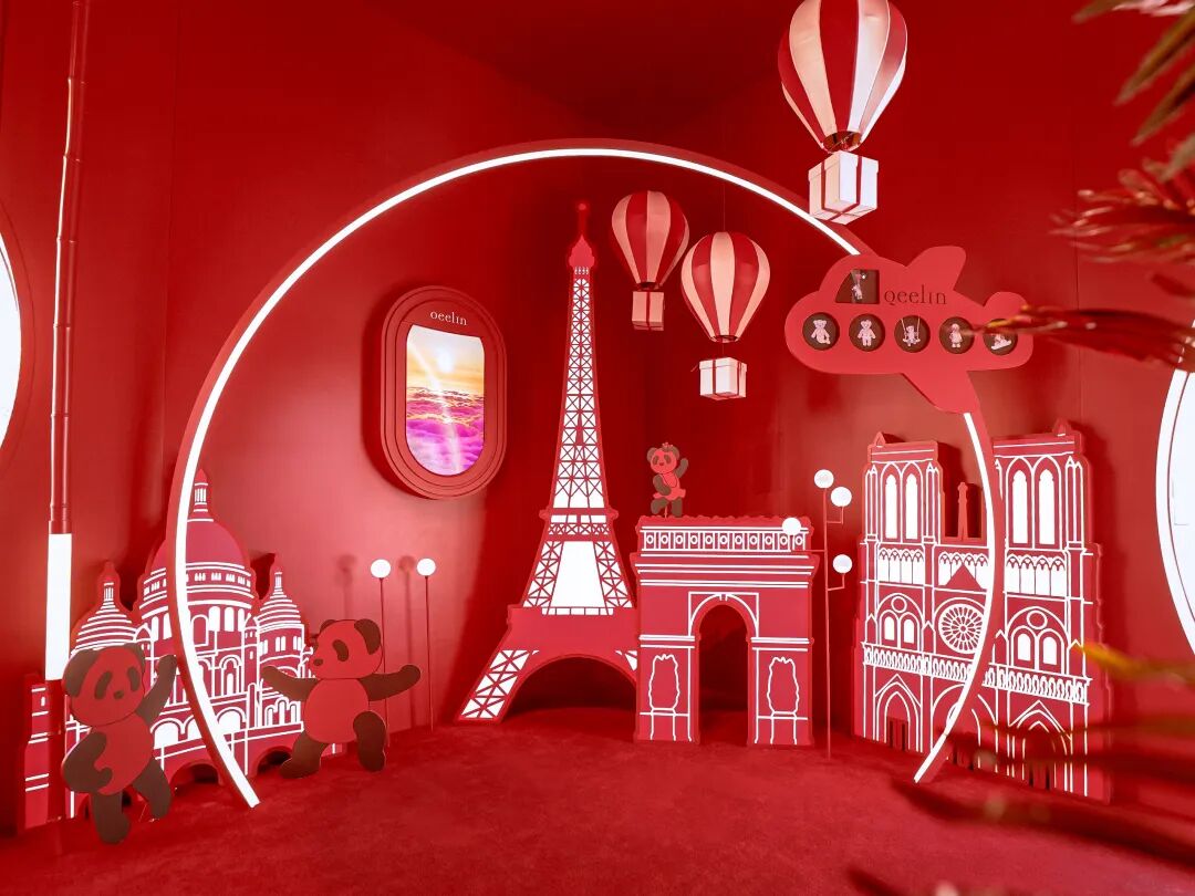 即日起至2023年1月15日,「Qeelin Bo Bo环球之旅限时主题展」空降上海久光百货外广场,以Qeelin标志性红色为整体基调,Wulu形灯笼与拱门交汇,巧妙映衬得屋顶的Bo Bo憨态可掬。