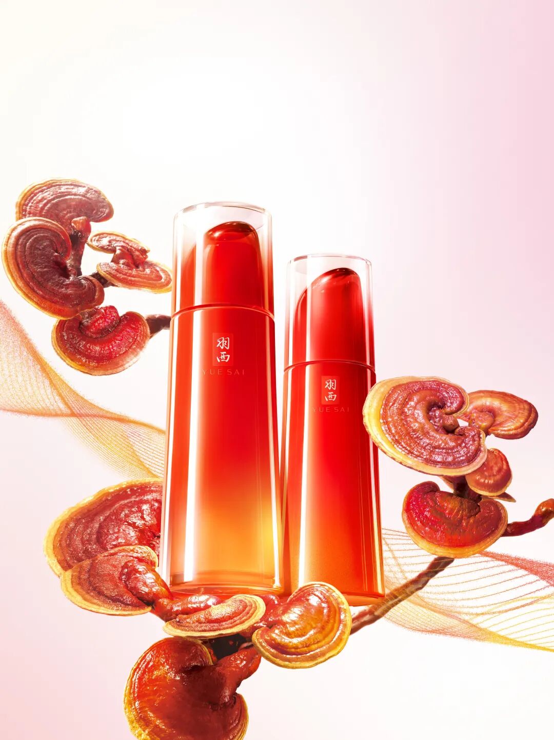 甄选霍山一品赤芝,以高效汉方成分携先进生物科技,在原本三重灵芝①精粹的基础上,添加全新成分三重维C②,新生抗氧,帮助肌肤重现水灵透亮。