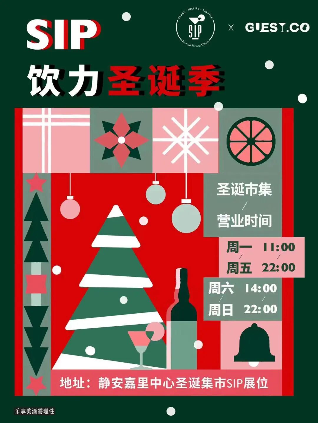 即日起至1月2日,保乐力加中国·SIP平台联合GUEST.CO在上海静安嘉里中心圣诞集市SIP展位打造饮力圣诞季活动,明星鸡尾酒吧、一日店长、SIP饮力实验室调酒大挑战、及调酒师专属的圣诞大礼包等多种社群多元趣味玩法。![]()