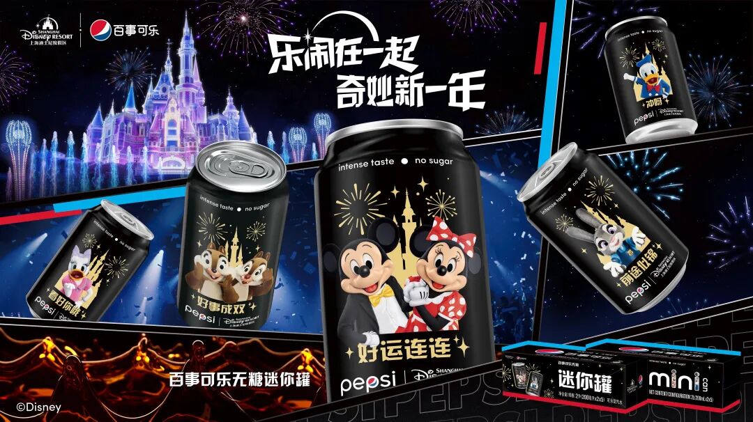 百事可乐无糖再度携手上海迪士尼度假区送上重磅惊喜,联名迷你罐奇妙来袭!迪士尼朋友们的把新一年的祝福打包送给你,「好运连连」、「好事成双」、「看好你哦」、「前途似锦」、「冲呀!」,年末迎新,就要与你乐闹在一起!