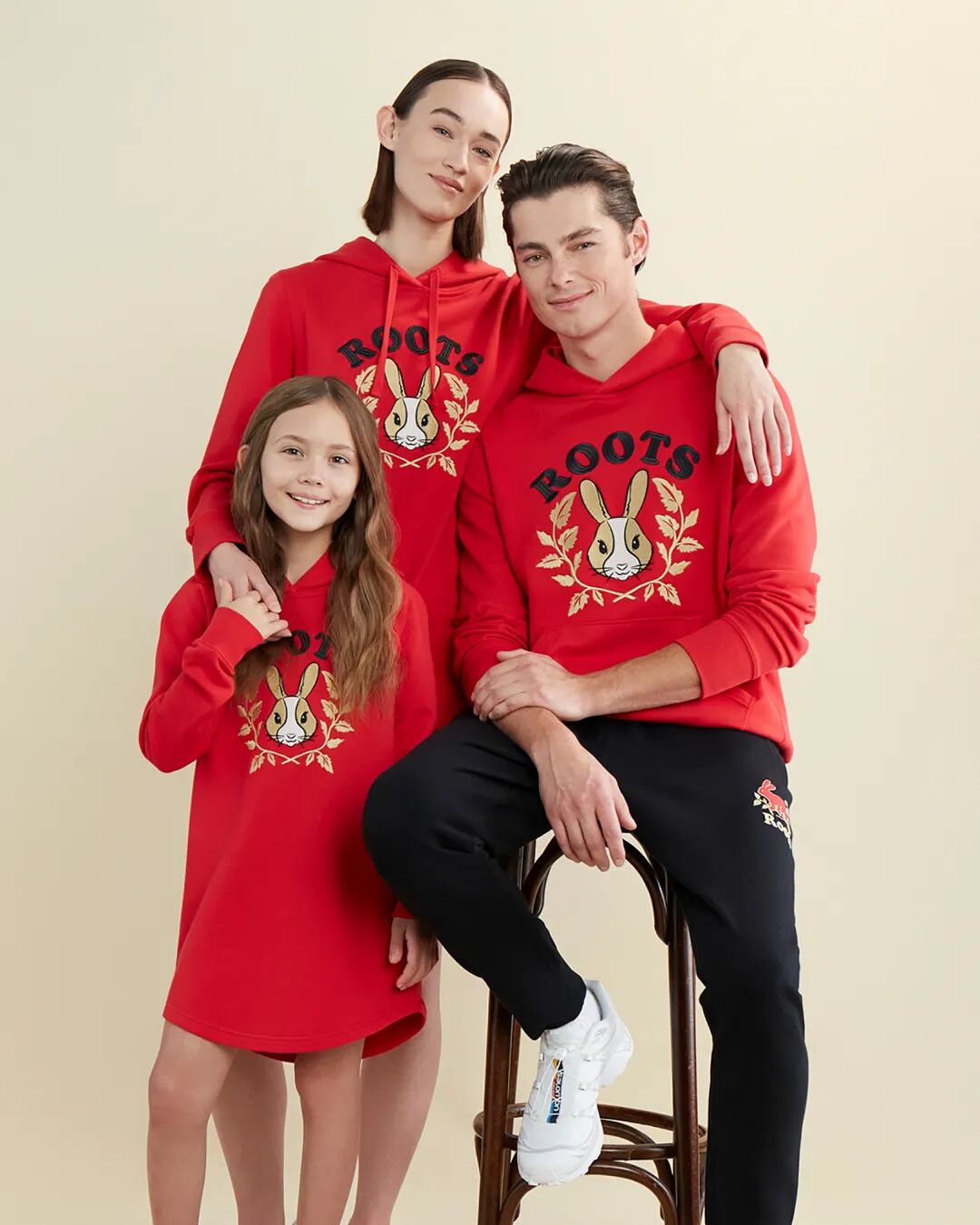 ROOTS经典的海狸LOGO摇身一变,让活泼可爱的小兔子成为新春将至的吉祥物,来自遥远的北美国度也一同感受兔年的喜悦,多种颜色搭配兔年LOGO,释放自由奔放的青春气息。此系列包含了连帽卫衣,圆领卫衣和连帽卫衣长裙等,不同样式诠释温暖设计,让舒适与摩登交汇,尽显时髦新春氛围。![]()