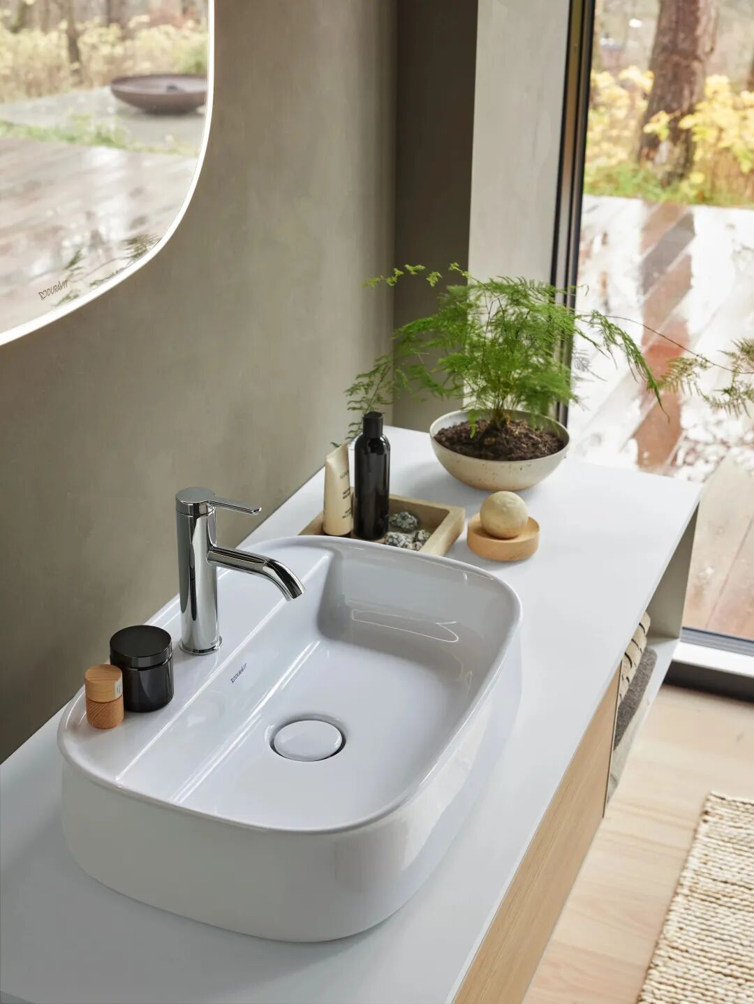 Zencha 浴室系列由国际设计界新秀 Sebastian Herkner匠心设计,灵感源自东方传统仪式和工艺,将独特的台上盆与简约家具相结合,设计巧妙,共有四种颜色可供选择,分为高光和哑光款,每一种都凸显了简洁优雅的设计,为日常的洗浴平添了一份仪式感。