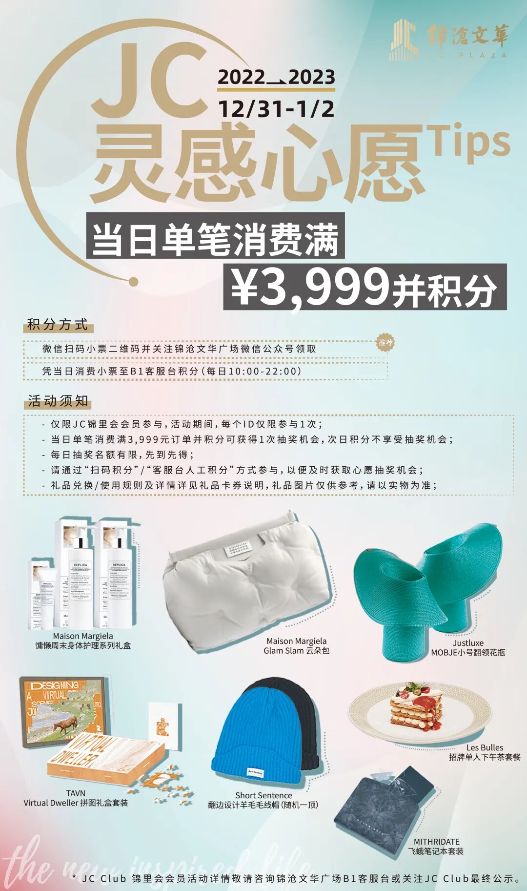 更有「翻篇」跨年音乐会震撼上演;2023新年限定福袋、新年来店礼、免费赠礼等年末压轴千树新年福利,等你来畅享!