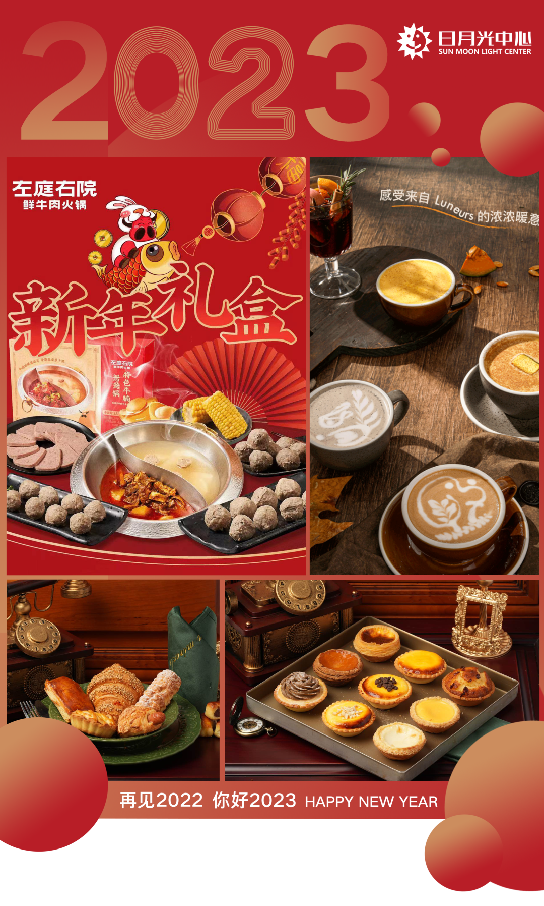 喜迎元旦,迎接美好2023。特殊时期要合理进补、营养膳食,上海日月光中心携手左庭右院、巡湘记、趁烧欢乐烧肉、Luneurs等多家餐饮品牌用心提供营养美味大餐,美食、汤饮随心搭配,补充能量、元气治愈、提高免疫力。
