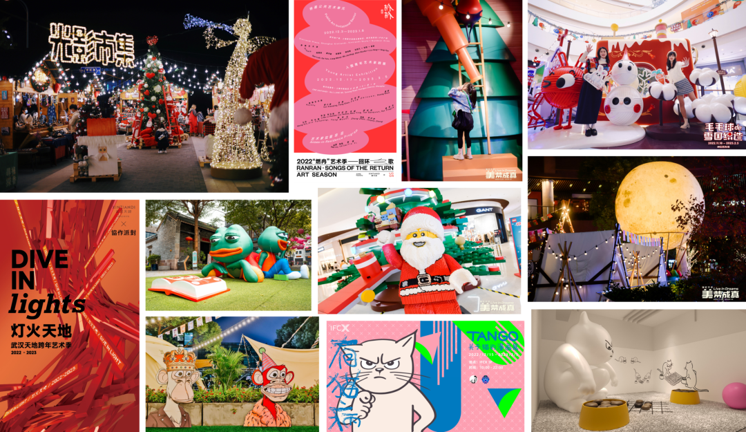 静安嘉里中心首个节日礼品商店惊喜降临,甄选出颜值超高的礼物清单,打造专属童话世界;Shine、KKIDS、KINETIC三个特色社群,用丰富多彩的活动带领社群成员发现更多都市生活新方式;Crazy Shopping年末感恩季也将持续用优享福利闪耀这个冬日。兴业太古汇开启” DARE FOR MORE, DARE TO WOW 爱混敢嗲·突发奇想”冬季主题活动季,五彩倒立兔惊喜亮相北广场、线上H5 “玩乐指南”、“DARE TO WOW”涂鸦艺术、冬日光影秀多个限时活动惊喜上线。五周年礼遇也如约而至,消费满额获得潮奢嗲礼、积分兑礼、幸运抽奖等精彩活动为消费者缔造节庆中的尊享礼遇。爱在一起,自成一派!这个跨年假期,来博荟广场 ONE EAST 惊喜过节,不仅可以打卡新年小屋和新年小火车,还有儿童兔子舞、不倒翁小天使派发、Fancy Fancy 街舞公开课等精彩表演轮番上阵,满满仪式感一起喜迎新年!