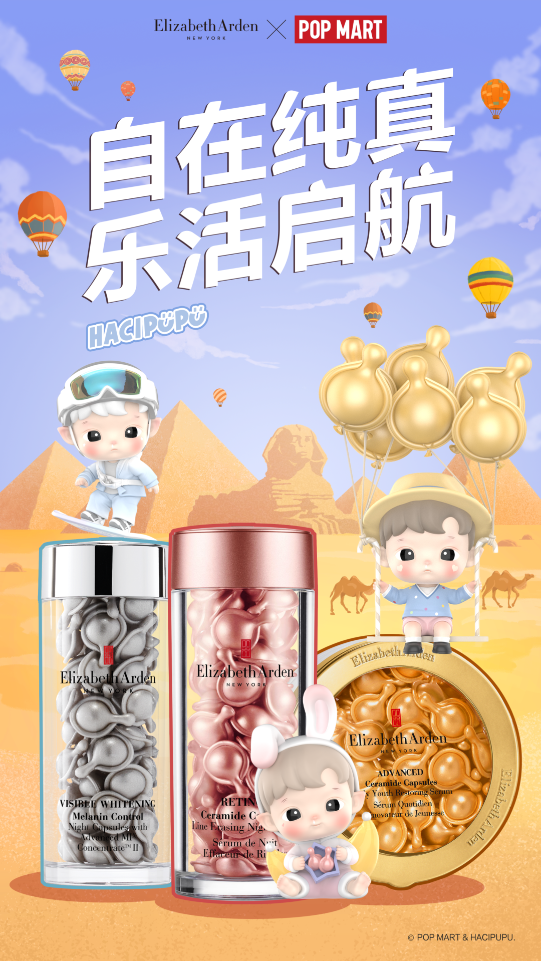 Elizabeth Arden伊丽莎白雅顿于2023新年之际,再度携手POP MART泡泡玛特破圈联名,特别定制潮玩IP形象HACIPUPU全新乐活系列,并联合雅顿胶囊家族推出新年联名限定礼盒,共同解锁萌趣惊喜,尽享自在纯真,2023与雅顿一起乐活启航。