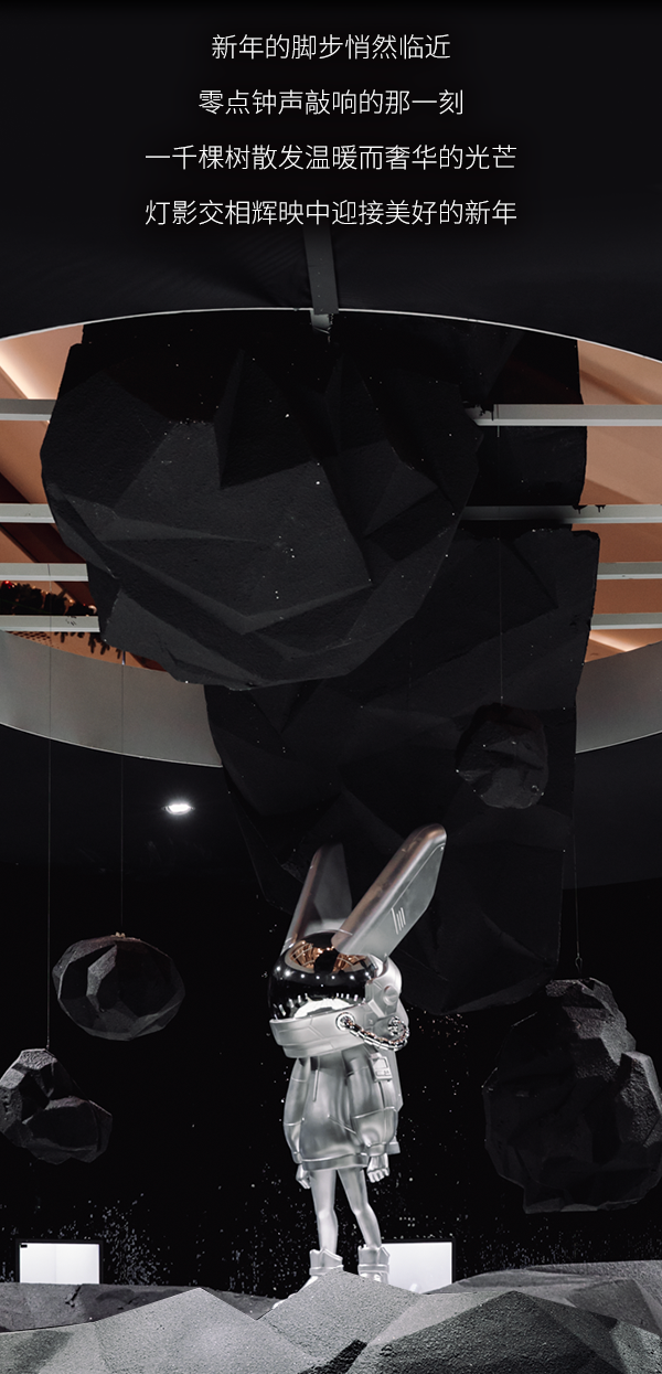 寒冬,在大地陷入沉睡之际,一块巨大“陨石”坠入大洋晶典·天安千树中庭,来自外太空的潮流艺术生命体ROBBi破土而出,在此播撒下未来的种子。![]()
