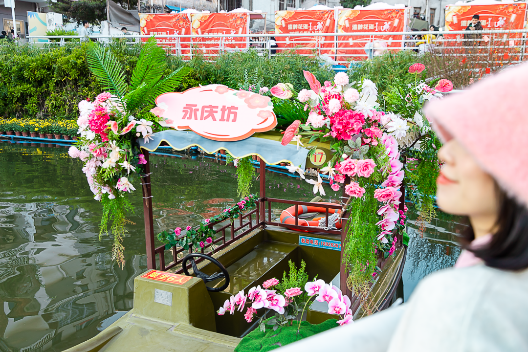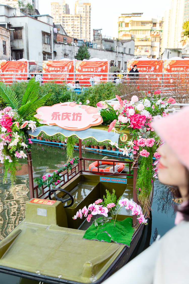 除了观赏拍照,还可以选择乘坐花船,一路游览永庆坊和荔湾湖公园,感受最浓厚的西关年味和久违的热闹氛围。