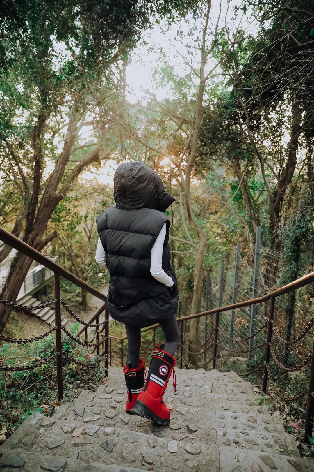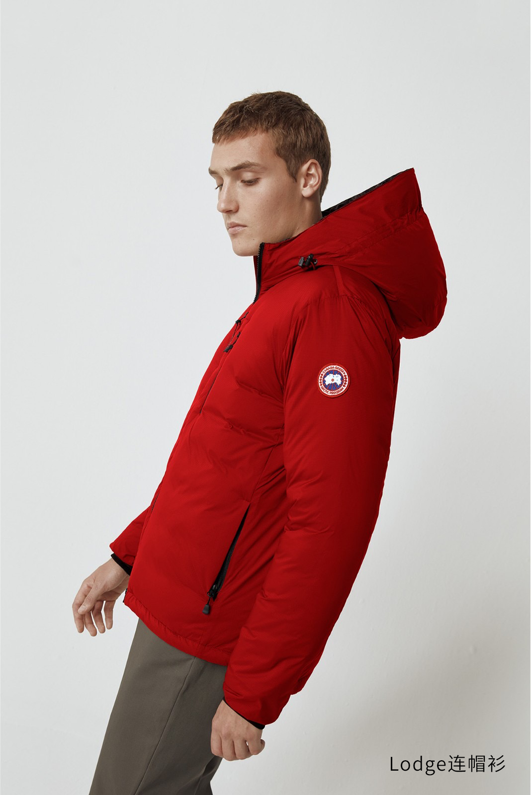 羽绒兜帽可调节松紧,能演绎出不同的穿法