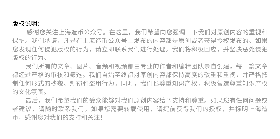 文章内容来源于公众号:上海造币 点此可查看原文。若涉及版权问题或存在侵权情况,请及时与我们联系,我们将第一时间进行删除处理。
