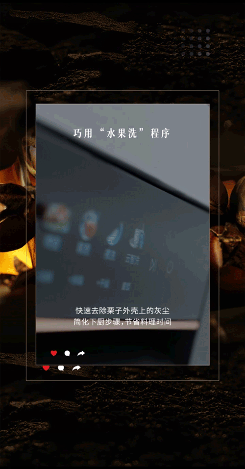 推荐:「点击展开」模拟品尝多味之秋,依次点击查看卡萨帝厨具的洗涤小tips,结合场景吸引大家购买。