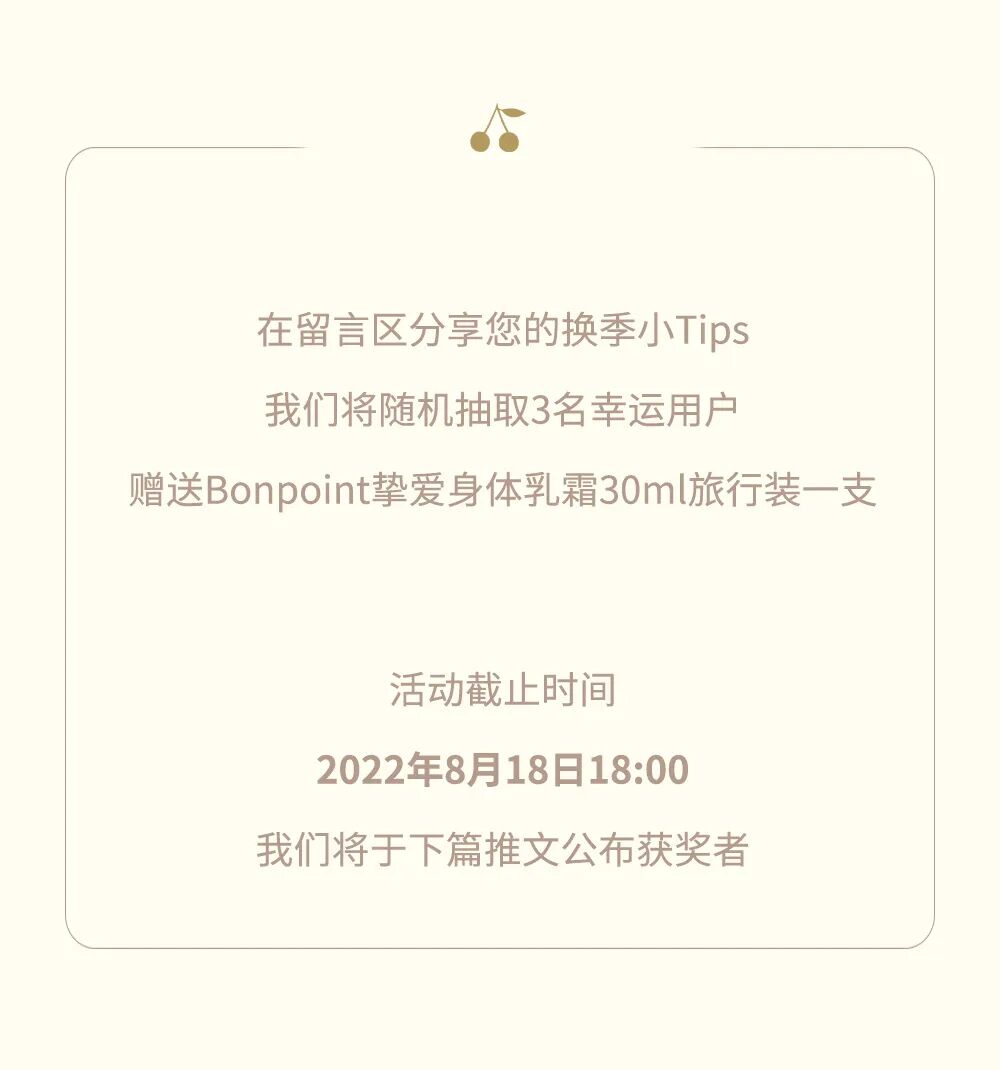 推荐:秋季干燥,如何做好皮肤护理?「点击展开」Bonpoint的产品介绍,分别推荐温和清洁、即刻舒缓和长效保湿的护肤品。