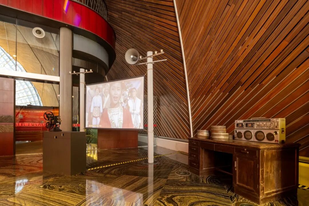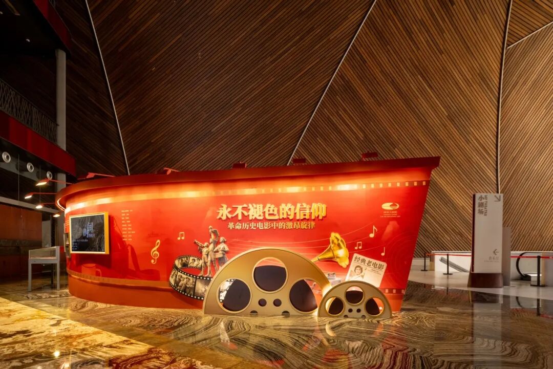2025年12月5日,一场以“永不褪色的信仰——革命历史电影中的激昂旋律”为主题的展览已在国家大剧院拉开帷幕。音乐唱片、创作手稿、复古海报、珍贵剧本等资料悉数亮相,在这里您可以通过扫码试听老唱片的激昂旋律,解锁更多老电影旋律背后的故事,还可以欣赏到老电视机播放的怀旧电影;您可以在怀旧电影院的售票处参与集章活动,在挂满老电影海报的复古场景之中沉浸式打卡,还可以在露天电影放映区参与互动体验。