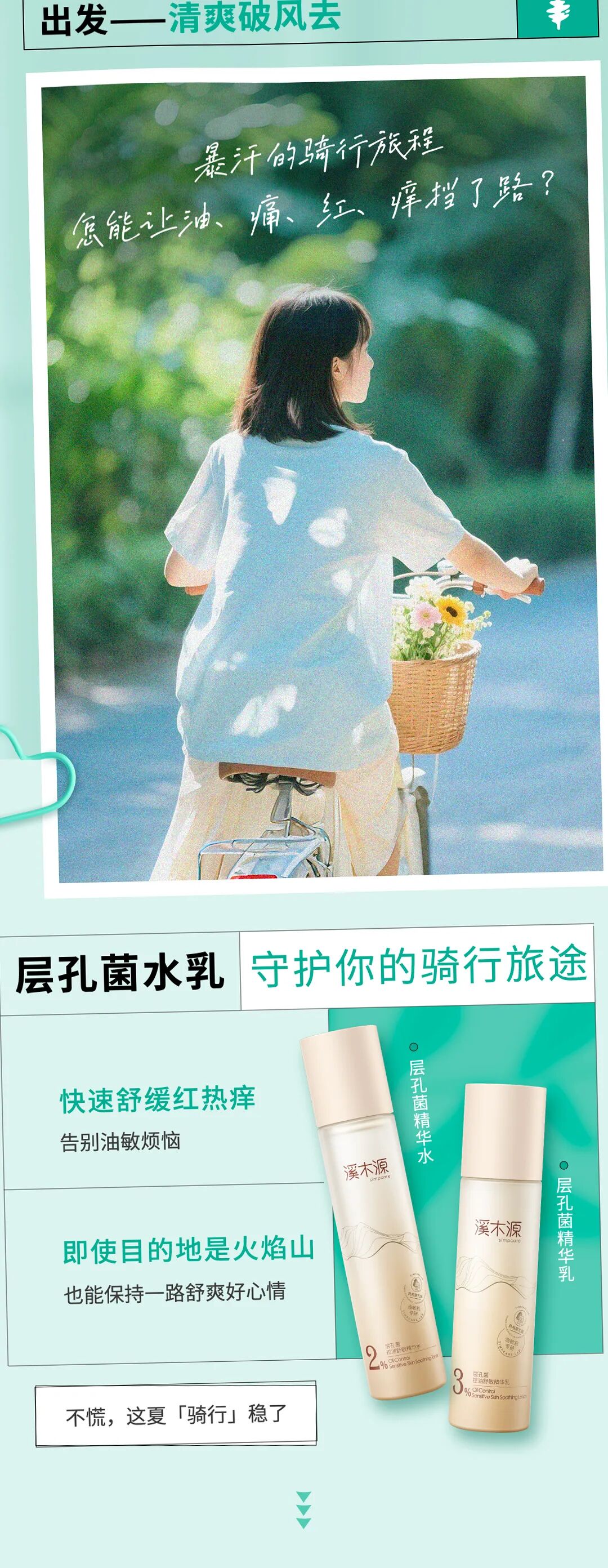 推荐:「点击展开」溪木源的夏日护肤速报后,多个平级「点击展开」展示不同夏日困局相应的护肤品推荐,吸引大家购入同款。
